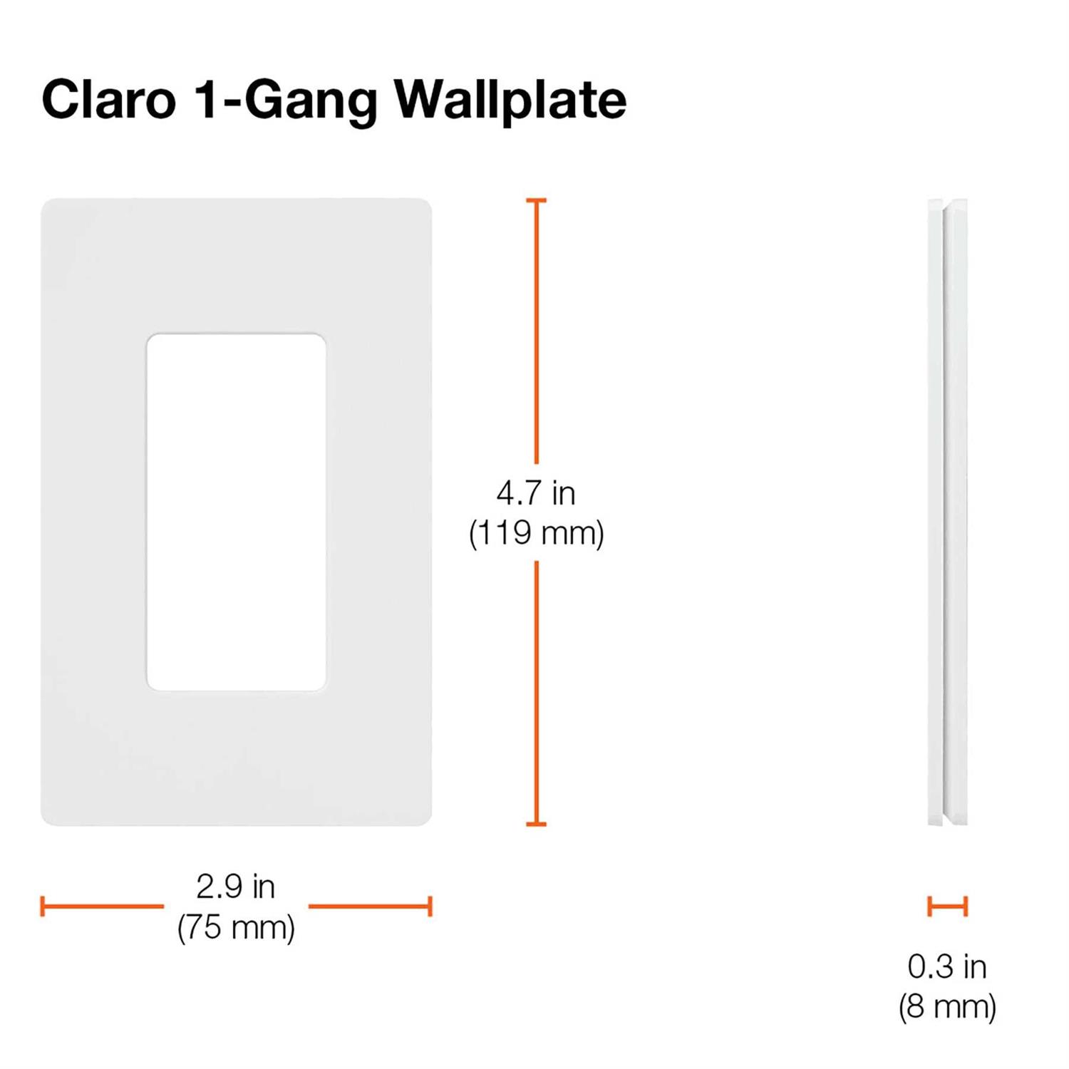 Claro wall plates are a simple and elegant solution designed to match your existing decorator opening dimmers, switches and accessories. They feature a clean appearance with no visible screws and mount flush to the wall. Claro wall plates are oversized to hide gaps around wall boxes and attach securely and snugly in place regardless of the wall condition. Claro wall plates are easy to install. Simply separate the front and back plates, attach the back plate to the wall with the screws provided and snap on the front plate for a clean and sophisticated look in just minutes.