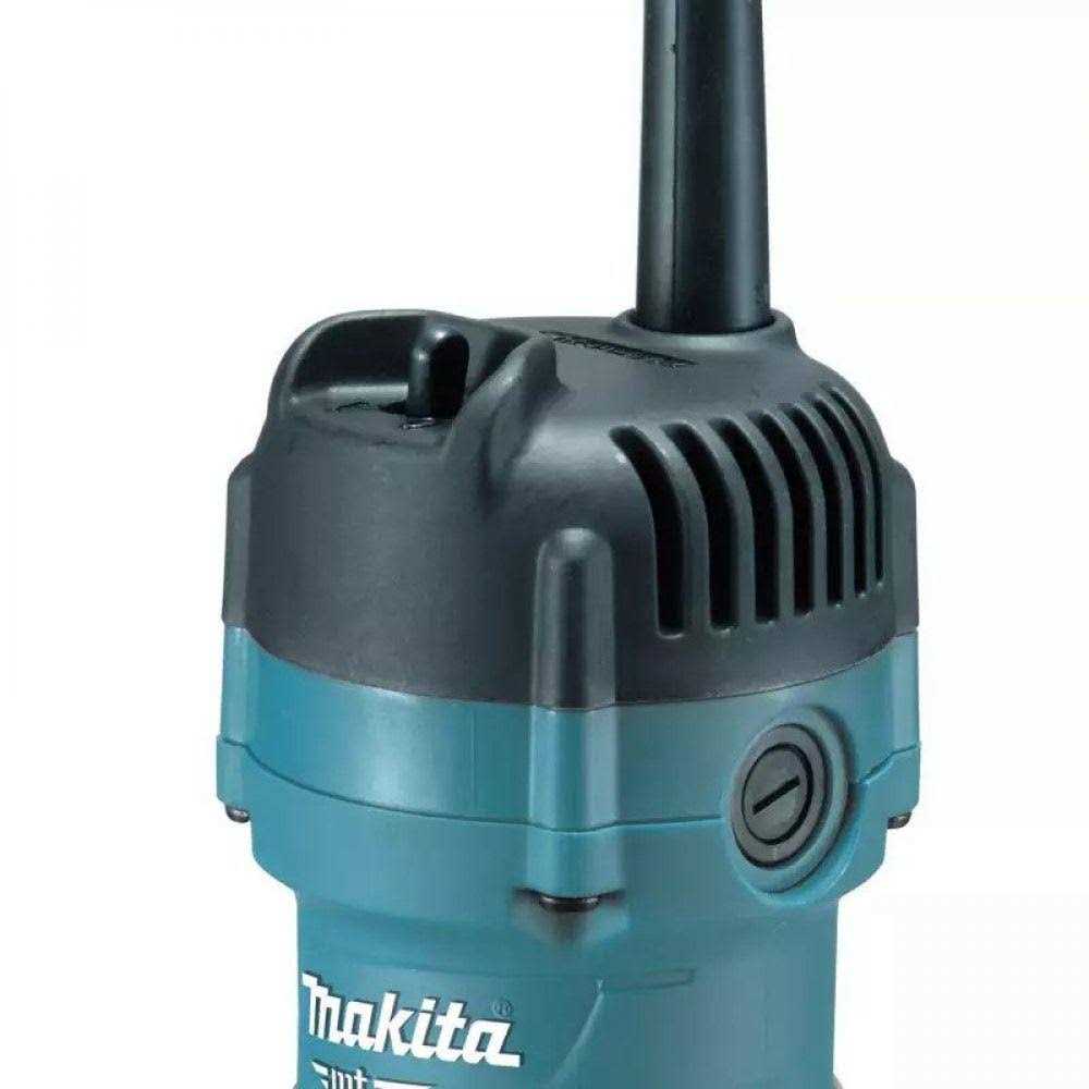 Powerful edge routerThis Makita edge router is ideal for milling laminated woods and veneer wood. The milling depth can be precisely adjusted and locked. The foot of the edge router is easy to adjust and because it is transparent, you always have a good view of the workpiece.SpecificationsThe maximum plunge depth of the cutter is 35 millimeters and the diameter of the shank is 6-6.35 millimeters. Good results are guaranteed with the high-speed motor. In addition, a copy ring, trimming guide, collet and other operating tools are also included.