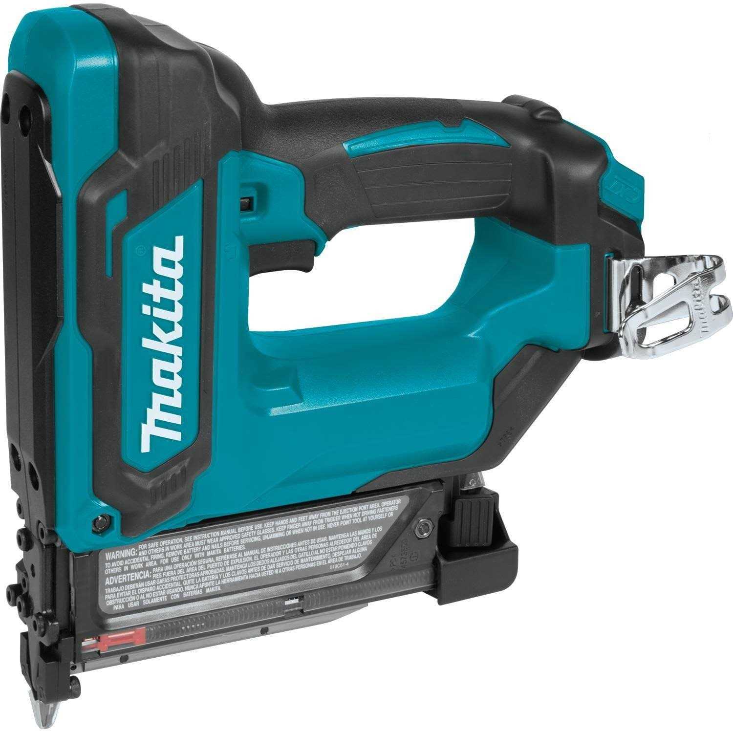 The Makita TP03Z is a small and portable 23 Ga. Pin nailer made for finishing and trim work. Lose the air hoses from traditional pneumatic nailers and gain all the versatility and handiness of cordless tools. This tool is made to move: it weighs only 4 pounds with a 2.0Ah battery attached helping you stay energized and productive by the end of the day. It is small enough to fit in tight spaces but packs a punch to get the job done. This model is the tool only without a battery or charger.