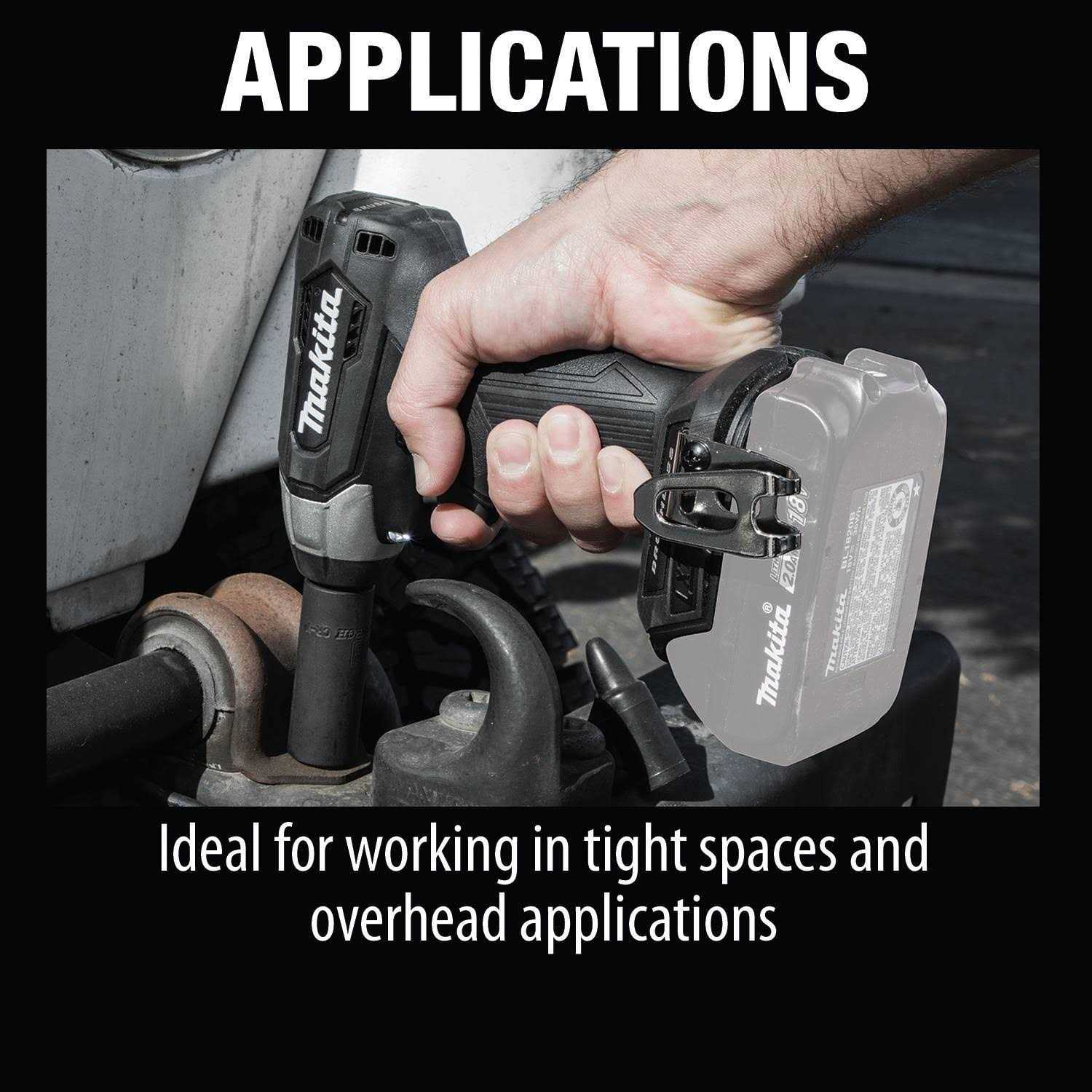 Makita created a new class in cordless with 18 V LXT sub-compact tools. Makita sub-compact gives users 12 V handling with 18 V run time and compatibility with the world’s largest 18 V lithium-ion cordless tool system. The 18 V LXT sub-compact brushless 3/8 in square drive impact wrench is ideal for working in tight spaces and for overhead applications. The XWT12ZB has an efficient Makita BL brushless motor engineered for up to 50% longer run time, increased power and speed and longer tool life. It has variable two-speed with 0 to 1300 and 0 to 2400 rpm and 0 to 2000 and 0 to 3600 ipm and up to 130 ft-lb of max torque. The compact size and lower weight mean reduced fatigue for operators, especially for overhead applications. For added convenience, the reverse rotation auto-stop mode stops rotation and impact when the fastener is loosened adequately. Users also get a variable-speed trigger, built-in LED lights and a convenient 3/8 in square drive for quick socket changes.