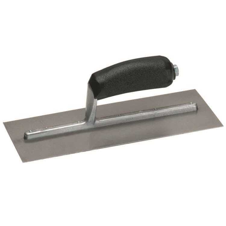 Has a cast aluminum mounting with a tempered, fully polished steel blade – Black plastic handle – Concave shape of the blade helps build up the joint for final finish Has a cast aluminum mounting with a tempered, fully polished steel blade. Smooth natural finish wood handle is securely attached. Concave shape of the blade helps build up the joint for the final finish. 11″ x 4-1/2″ size.