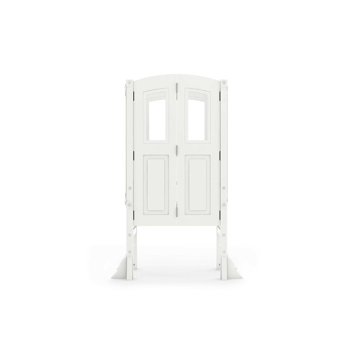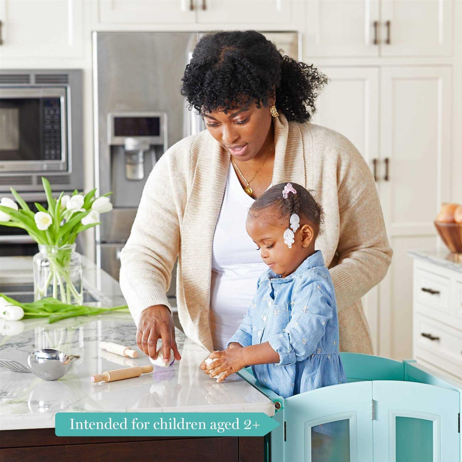 Promote independence, safety and togetherness with the Martha Stewart Kitchen Helper. Securely elevate toddlers and young children to counter height, allowing them to safely join in on moments of family togetherness in the kitchen. Encourage independence and confidence as children take on small tasks and learn while doing. Inset windows, a classic design and contemporary color options allow the Martha Stewart Kitchen Helper to seamlessly integrate into any kitchen. This lightweight, foldable stool is constructed from a durable, easy-to-clean combination of beech solids and birch plywood. Includes mesh Kitchen Helper Keepers for both open sides and a non-slip mat for extra security. Arrives almost completely assembled; simply attach the four stabilizing feet. For ages 2 and up. Measures 23″L x 23″W x 36″H.