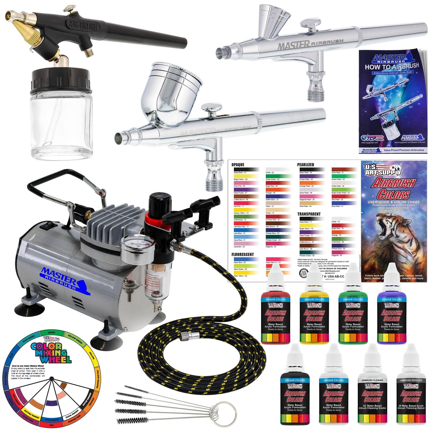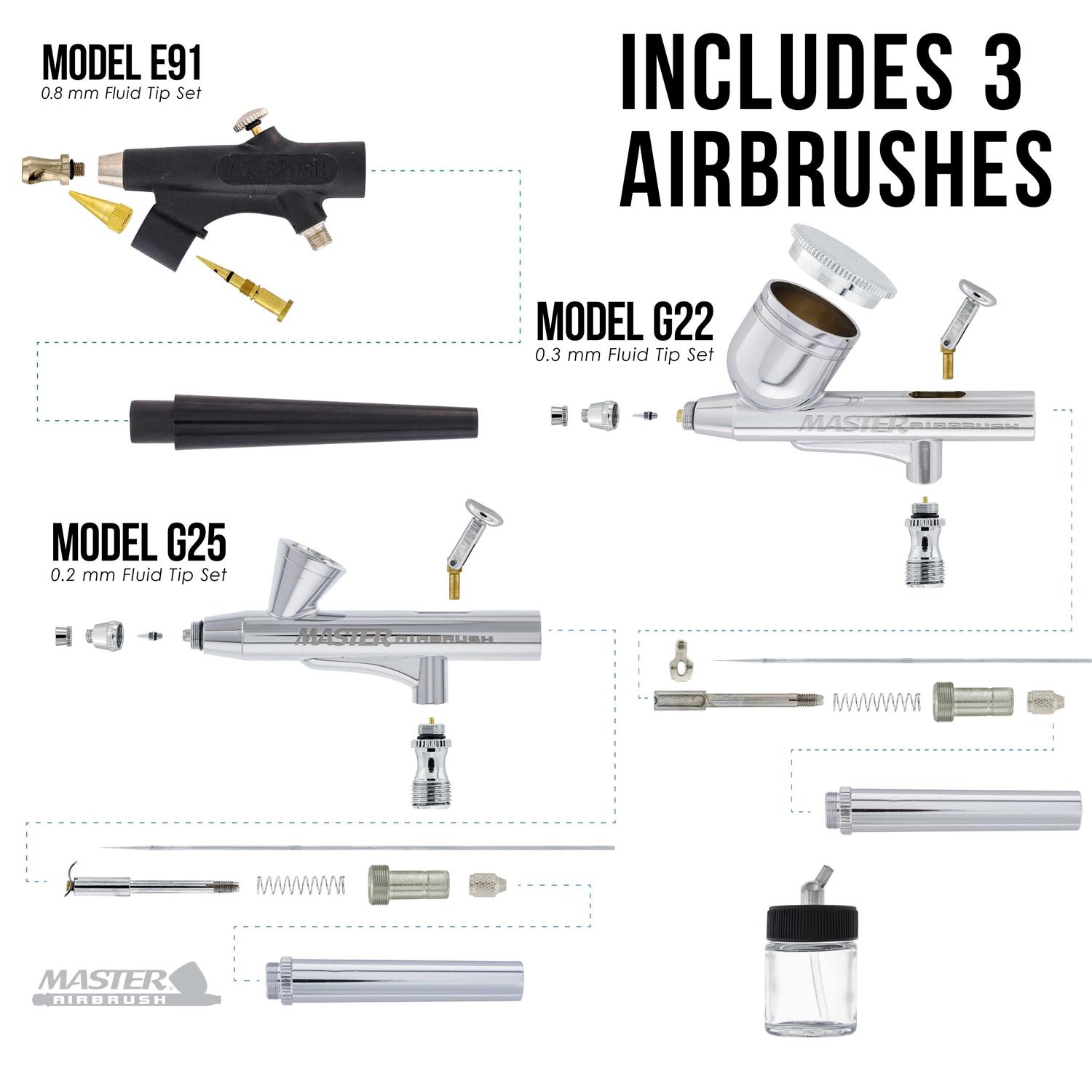 Master Airbrush Professional 3 Airbrush System with Compressor and 6