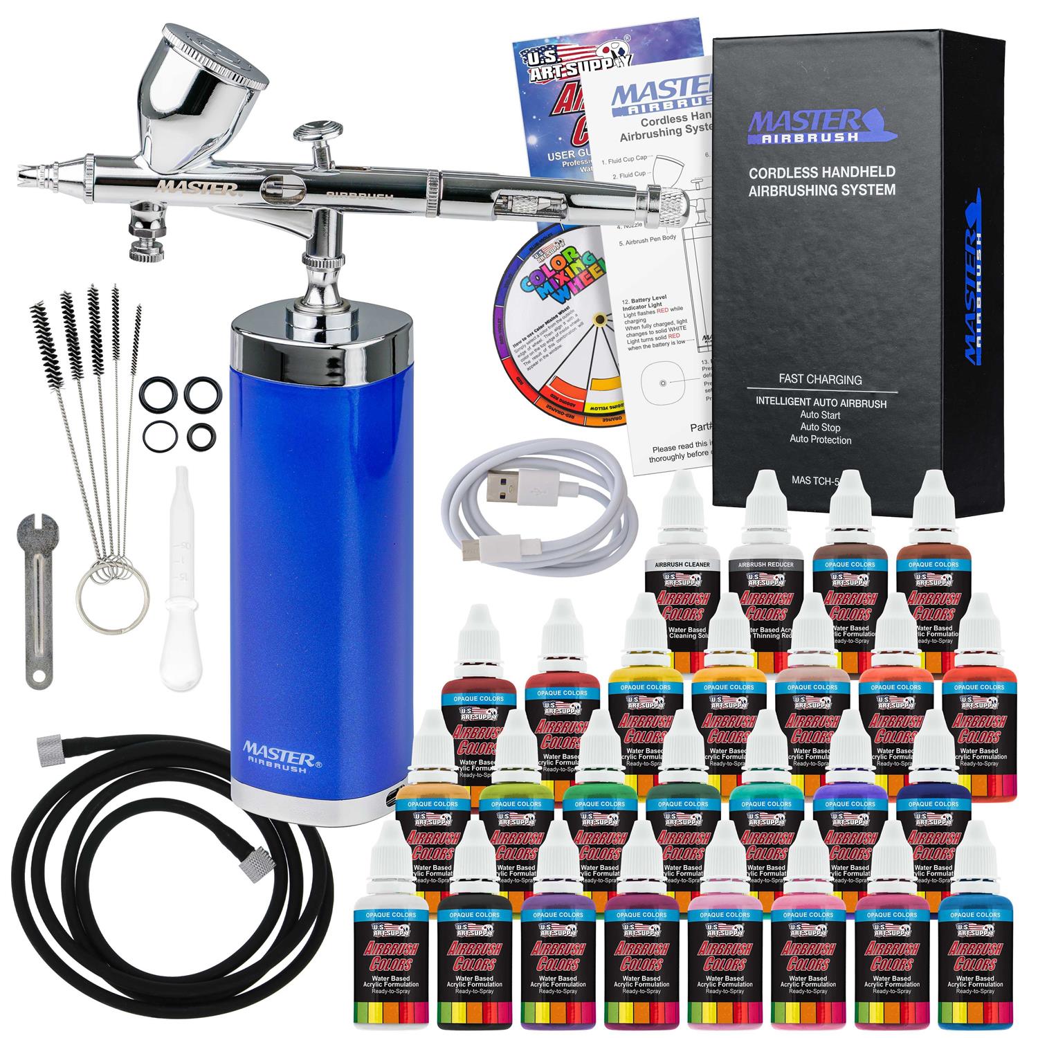 Master Airbrush Powerful Cordless Handheld Acrylic Paint Airbrushing System Primary Opaque Paint Colors