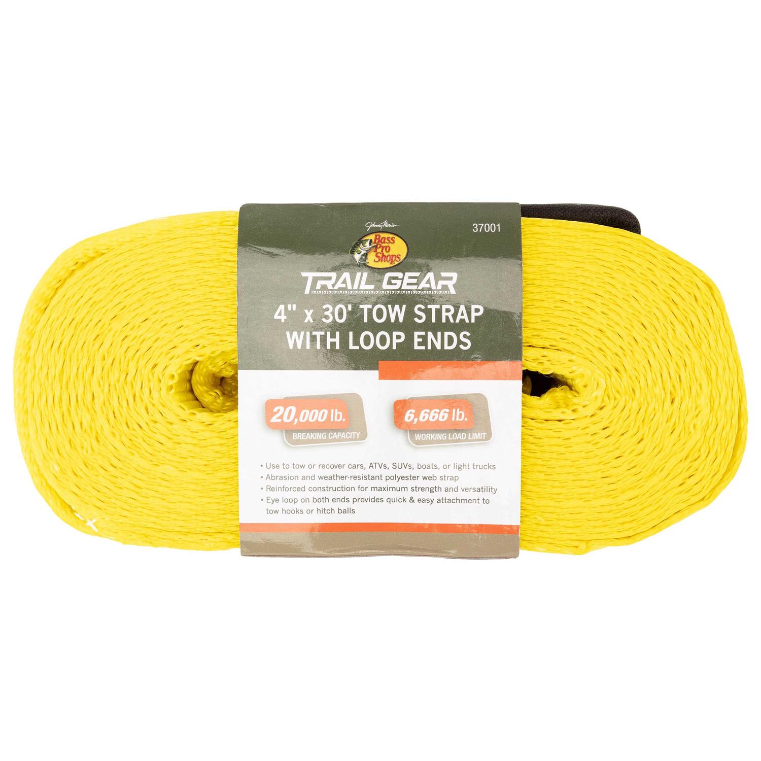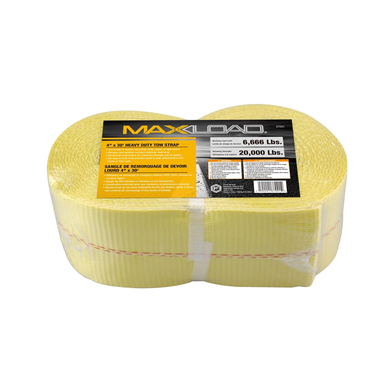 Max Load’s 4″ x 30′ heavy duty tow strap is great for towing or recovering cars, ATVs, SUVs, boats, or light trucks. The straps are made from abrasion and weather-resistant polyester and the reinforced construction provide maximum strength and versatility. This strap has an eye loop on both ends that provide quick and easy attachment to tow hooks or hitch balls.