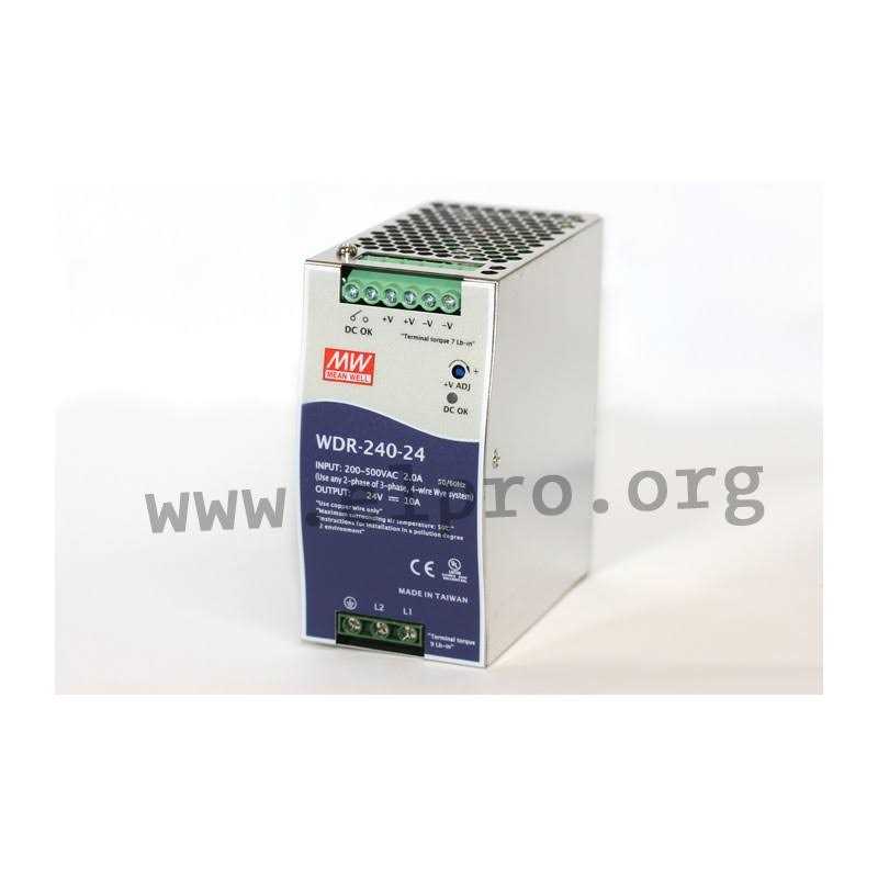 Mean Well DIN rail switching power supplies WDR-240-24, 240W, 2-phase input, WDR-240 series