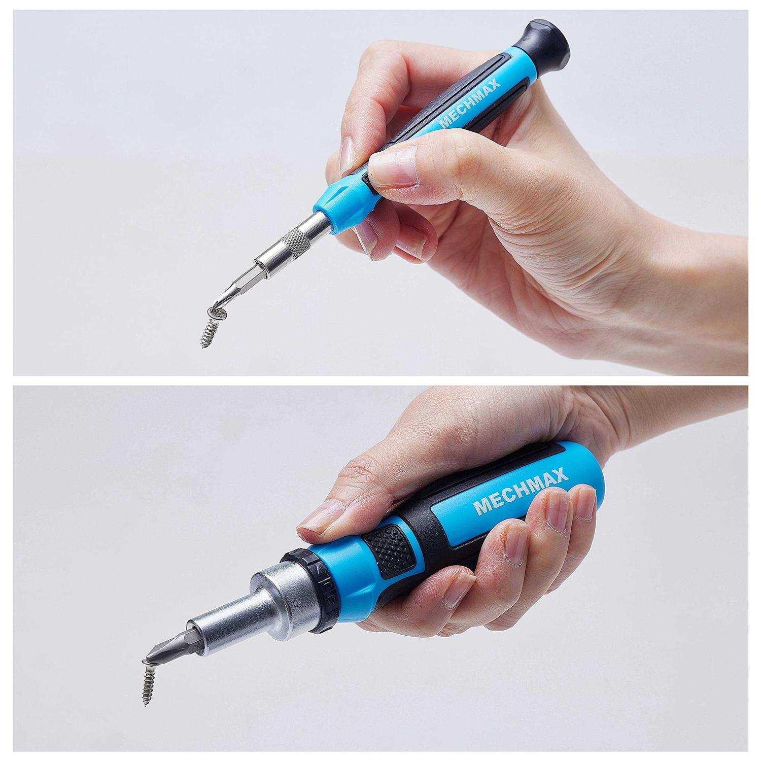 HOME ESSENTIAL- Designed with most popular size sockets, screwdriver bits and precision bits for household, garage, apartment, dorm, back to school, electronics equipment, glasses, jewelry repair projects, and as a gift VARIETY- Contains 9 piece 1/4 inch drive sockets, 55 piece wide range sizes of screwdriver bits and presision screwdriver bits, 1 piece 1/4 inch drive none slip grip ratcheting bit driver, 1 piece precision bit driver and 2 extenion holders HIGH PERFORMANCE- High strength drop forge Chrome Vanadium steel bits and alloy steel sockets, with heat treatment provides hardness and torqueness for high performance DURABILITY- Sockets are made with heat treatment and polished chrome plated finish which protects against corrosion, non-slip PP+TPR soft grip comfort drivers, both provide durable strength for user EASY STORAGE- All tools contained in a sturdy transparent lid injection plastic case for easy tool storage and identification, keeping tools safe in house or garage and good portability The MECHMAX 68 Piece Ratcheting Screwdriver Bits and Socket Set is a great portable tool kit for your home, house, apartment, back to school or as a gift. The set contents a wide range size of screwdriver bits and 9 piece 1/4 inch drive sockets for most home basic projects. The TPR + PP non-slip ratcheting screwdriver handle has forward and reverse ratcheting for quick adjustments, the magnetic extension holder adapt to 1/4-inch drive bits. The precision bits driver for exquisite projec on digital equipment, jewelry, watches and glasses 35- Bits (6.35*25mm) Slotted: 3, 4, 5, 5, 6, 6, 7, 7 mm Phillips: #0, #1, #1, #2, #2, #2, #3, #3 PZ: #0, #1, #2, #3 Star: T10, T15, T15, T20, T20, T25, T27, T30 Hex: 3, 4, 5, 6 mm Square: S0, S1 Socket Adapter 20- Precision Bits(4*28mm) Slotted: 1, 1.5, 2, 2.5 mm Phillips: #000, #00, #00, #0, #0, #1, #1 Star: T4, T5, T6, T7, T8, T9 Hex: 2.0, 2.5, 3.0 mm 9- 1/4 in Drive Sockets: 4, 5, 6, 7, 8, 9, 10, 11, 12 mm 1- Precision Bits Holder 1- Precision Bits Driver 1- Magnetic Bits Holder 1- Ratcheting Bit Driver In Plastic Case