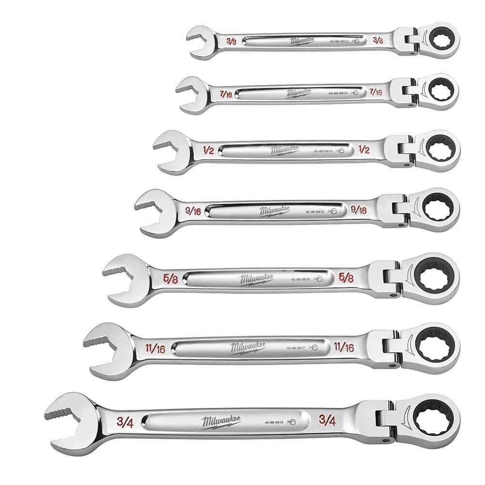 Milwaukee 144-Position Flex-Head Ratcheting Combination Wrench Set SAE and Set