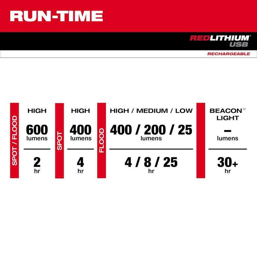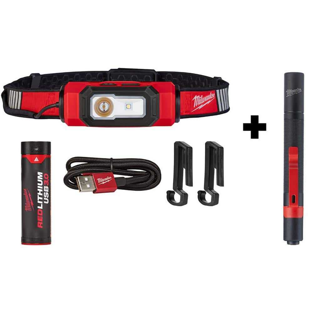 Milwaukee 2116-21-2105 600 Lumens LED REDLITHIUM USB 360-Degree Visibility Hard Hat Headlamp with 100 Lumens Pen Light