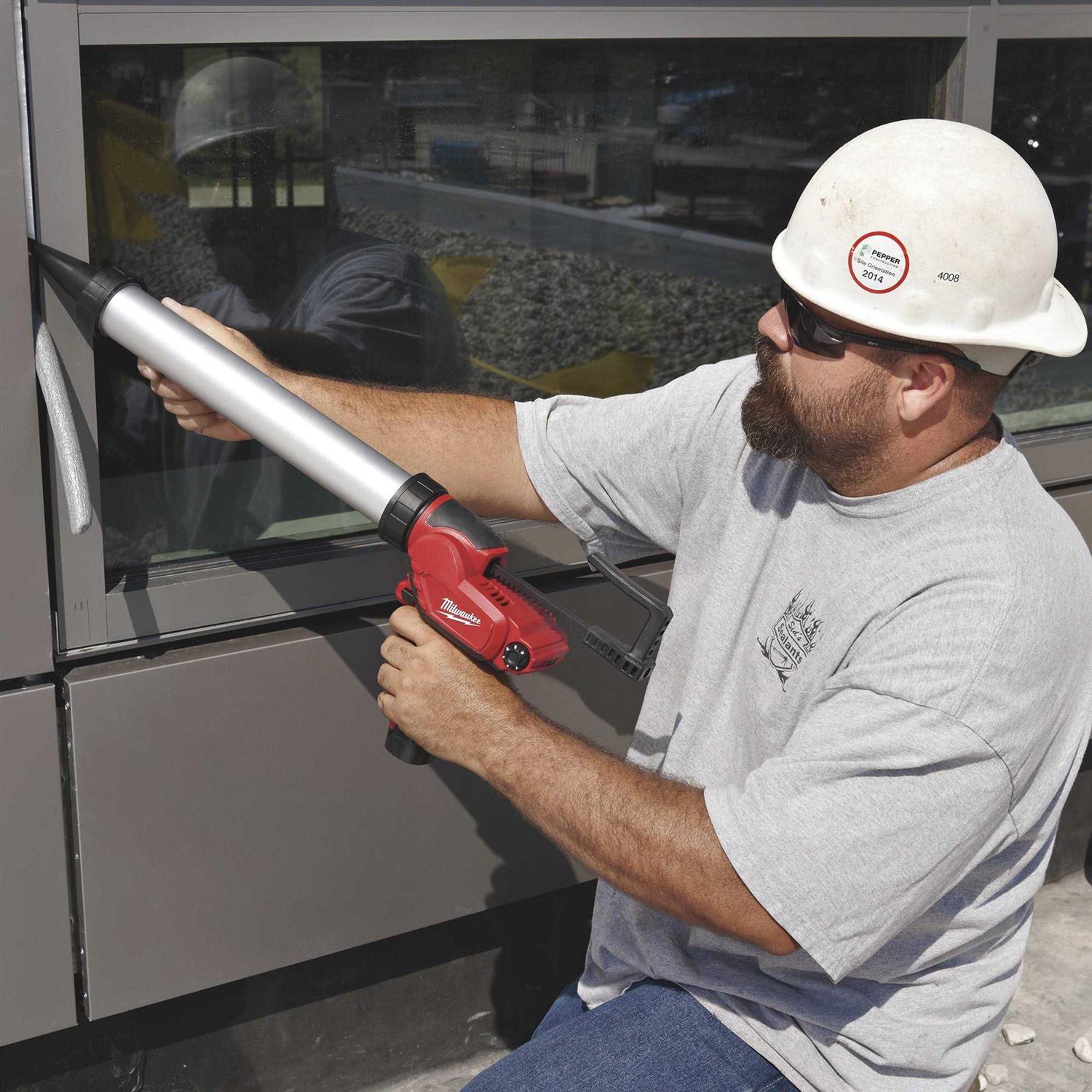 The M12 Caulk and Adhesive Gun is the lightest, most compact cordless powered caulk gun on the market today. With up to 400 lbs. of pushing force the M12 Caulk Gun easily dispenses everyday construction sealants and adhesives. The combination Variable Speed Trigger and Max-Speed dial allow for total application speed control. The 360 degree Rotating Collar delivers maximum control around turns. The tool also features auto-reversing anti-drip, a seal puncture tool and durable hang hook for versatility on the job. Powered by the revolutionary M12 REDLITHIUM Battery, the M12 Caulk Gun will dispense up to 150 10oz. tubes of building sealant on one charge.This configuration is designed to work with 20oz. sausage pack style material containers. Milwaukee also offers accessory conversion kits to change to 10oz. cartridges (48-08-0900) and Quart cartridges (48-08-0910). Milwaukee 2442-21 Caulk & Adhesive Gun Features: Easily dispenses over 100 10 oz. tubes on a single charge Features a rotational speed dial and variable-speed trigger Part of the M12 System, featuring over 70 tools Supplies up to 400 lbs. of thrust Aluminum barrel makes tool lightweight Plunger has built-in hook for quick storage Includes seal puncture tool 10 oz. and quart adapters sold separately Compatible with all M12 batteries Compatible with all M12 chargers Milwaukee 2442-21 Specifications: Voltage: 12V Battery System: M12 Length: 16-1/8 ” Warranty: 5 Year Limited Warranty Battery: M12 REDLITHIUM Charger: 12V charger Charge Time: 30 Minutes Battery Warranty: 2 Year Tool Warranty: 5 Years Weight: 4.9 lbs Power Source: Cordless Milwaukee 2442-21 Includes: (1) 12V 20 oz Aluminum Barrel Sausage Conversion Kit (48-08-0905) (1) M12 Lithium-ion Battery Charger (48-59-2401) (1) M12 REDLITHIUM CP1.5 Battery Pack (48-11-2401)