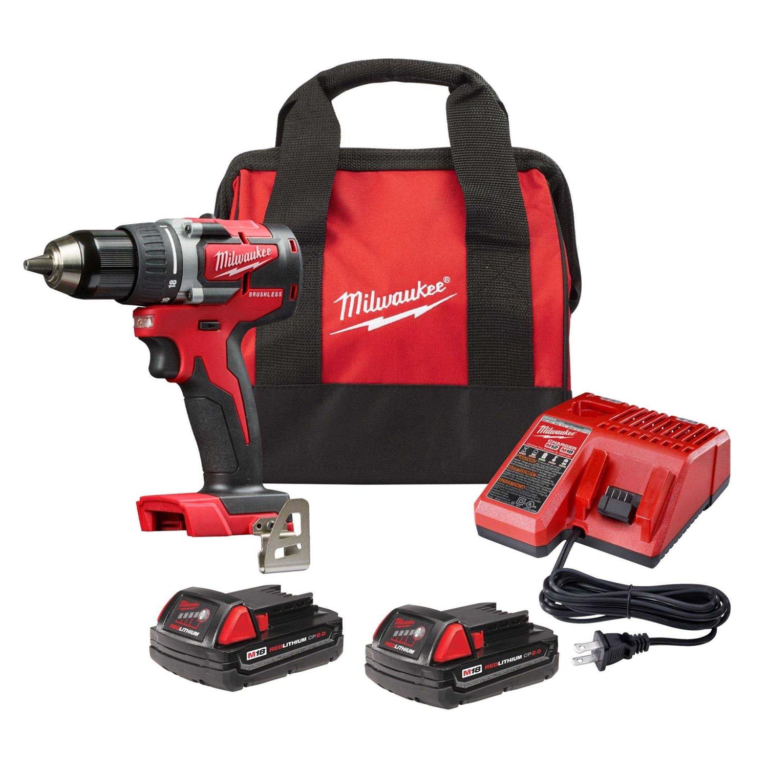 - Includes: 2801-20 Drill Driver (2) 48-11-1820 M18 REDLITHIUM 2.0 compact batteries 48-59-1812 M18-M12 multi-voltage charger carrying case.