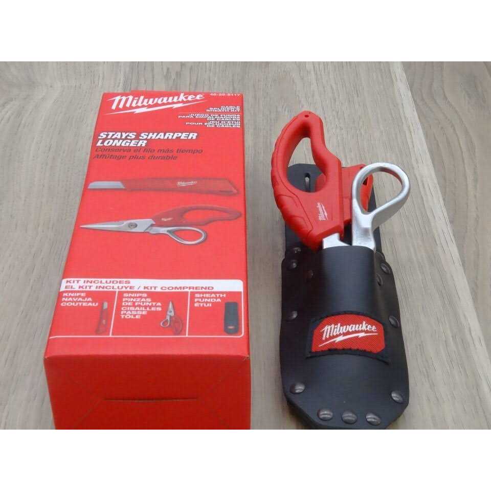 The MILWAUKEE Cable Splicer’s Sheath Kit features Electrician Snips and an Underground Knife that are ideal for cutting small gauge wire and stripping multi-layer wire and cable. The Underground Knife has a stainless steel blade that is optimized to stay sharper longer and the ergonomic handle is designed for all-day use. The Electrician Snips feature Bolt Lock Technology to prevent blades from loosening. Milwaukee forged, serrated blades include a wire gullet designed to prevent blades from walking while making a cut. All-Metal handles and comfortable grips provide maximum leverage and comfort. The Milwaukee Cable Splicer’s Sheath is designed to securely hold Electrician Snips and Knife. It.s made of durable leather to prevent wear and features rivet reinforcement for puncture protection and longer life. The sheath is designed to sit flush when attached to a belt and features a hole for easy riveting to leather tool belts.
