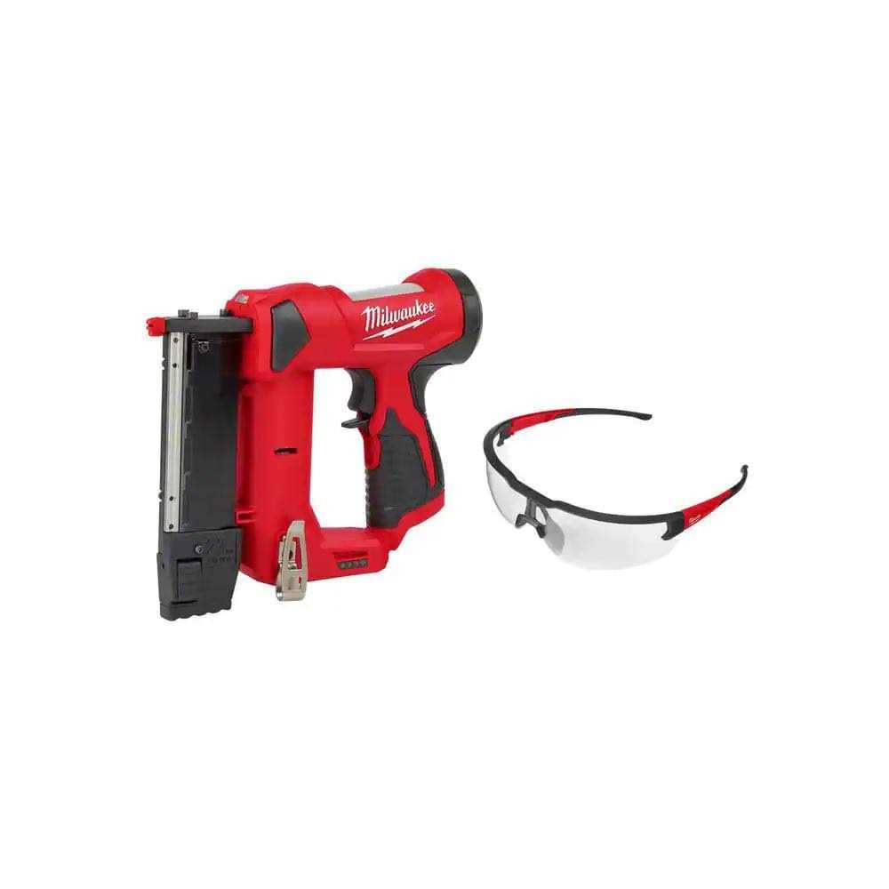 Milwaukee M12 12-Volt 23-Gauge Lithium-Ion Cordless Pin Nailer (Tool-Only) with Clear Anti Scratch Safety Glasses