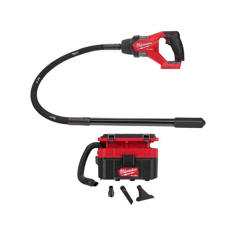 Milwaukee 2910-20-0970-20 M18 Fuel 18-Volt Lithium-Ion Brushless Cordless 4 ft. Concrete Pencil Vibrator (Tool-Only) w/Fuel PACKOUT Wet/Dry Vacuum