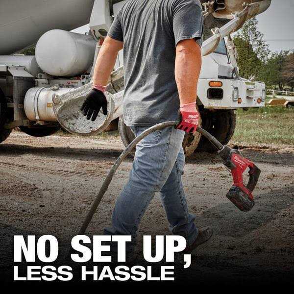 The MILWAUKEE M18 FUEL 4 ft Concrete Pencil Vibrator generates up to 1.8 peak HP, with no setup and gives users the ability to consolidate 20 yds³ of concrete per charge. The M18 FUEL 4 ft Concrete Pencil Vibrator generates 1.8 Peak HP, which is three times more powerful than competitive cordless pencil vibrators for concrete, all on the M18 Cordless System. The POWERSTATE Brushless Motor delivers maximum sustained power and 12,500 VPM for optimal consolidation with a variable speed trigger. REDLINK PLUS Intelligence ensures unmatched levels of performance and protection. The M18 REDLITHIUM HIGH OUTPUT XC6.0 Batteries deliver users 50% more power while running 50% cooler than M18 REDLITHIUM XC Batteries and are compatible with 200+ tools in the M18 System. Its POWERSTATE brushless motor delivers up to 60% more suction, giving users powerful performance to easily clean up common wet and dry jobsite debris. PACKOUT compatibility gives this cordless wet/dry vac unmatched mobility, saving users the time spent hauling tools on and off the jobsite. Users can use this vacuum on and off their PACKOUT stack, making this the most portable and versatile wet/dry cleanup solution available.