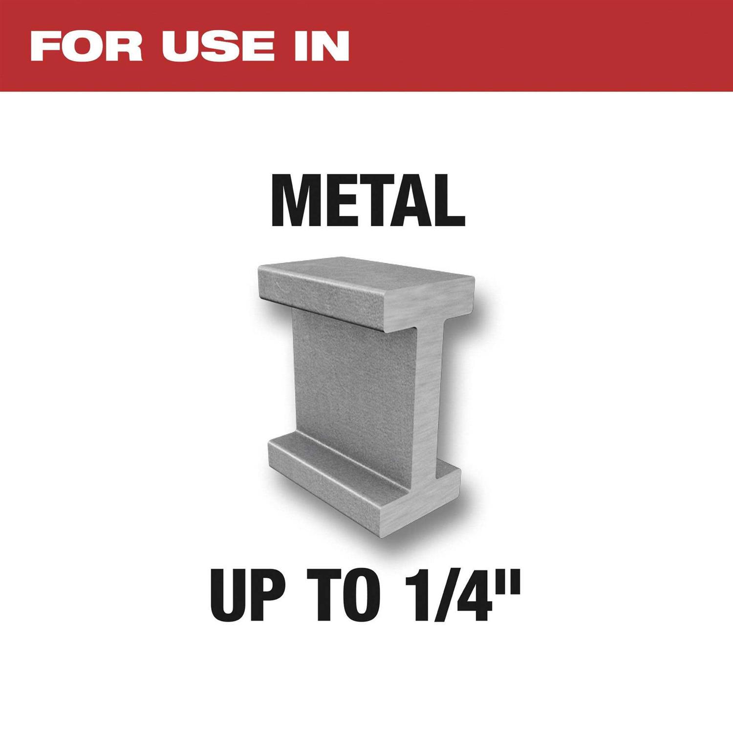 - For use in up to 1/4″ metal