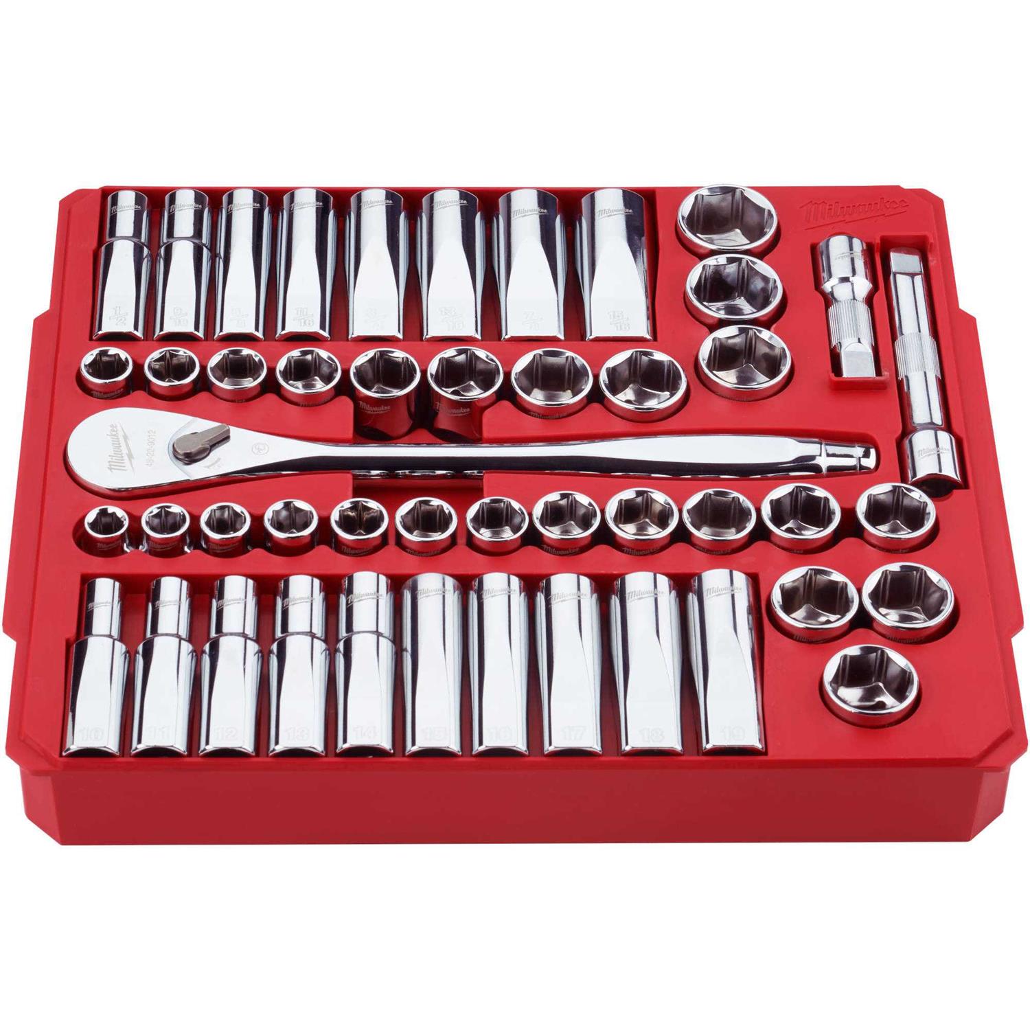 Milwaukee 1/2 in. Drive SAE & Metric Ratchet and Socket Set, 47-Piece