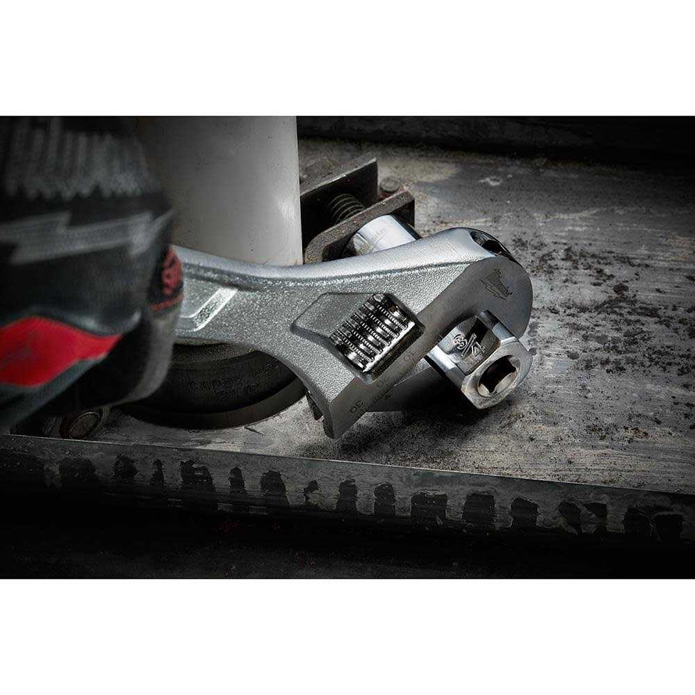 Milwaukee s 12pc 3/8 Drive Ratchet Set delivers ultimate versatility and access. The slim-profile ratchet features a pivoting head that can be used as a ratchet, a nut driver, or any angle in between. Milwaukee s proprietary sockets feature a parallel flat design for wrench compatibility and to deter rolling. Socket sizes are stamped into the flats for improved visibility. The kit is stored in a soft-sided carrying case that includes a socket rail to keep sockets and accessories organized, both on and off the jobsite.