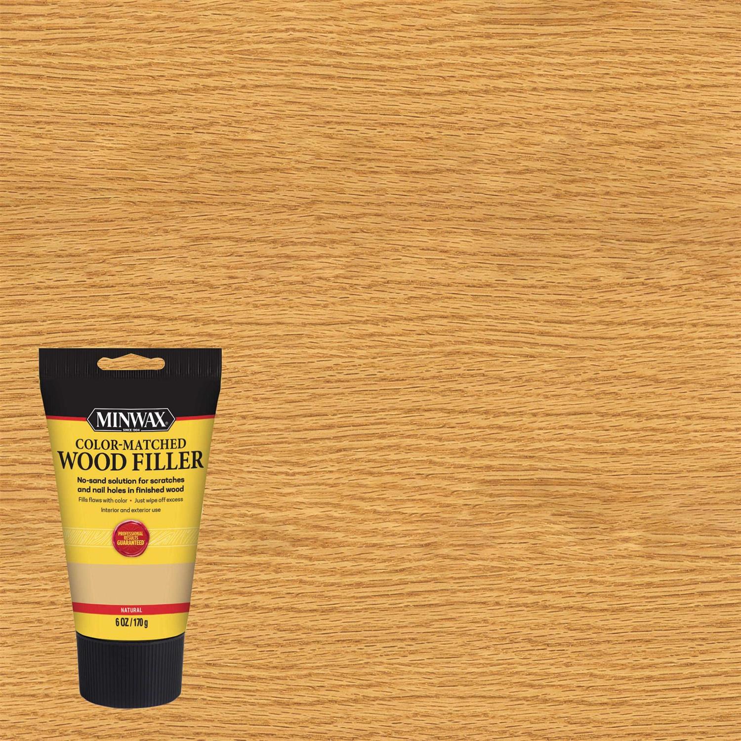 Minwax Color-Matched Wood Filler is a high-quality no-sand solution for defects in finished wood. The ready-to-use formula is ideal for repairing cracks gouges nail holes knot holes and other defects in all types of finished or unfinished indoor and outdoor wood surfaces. It looks and acts like real wood and can be sanded cut drilled planed stained varnished painted or lacquered.