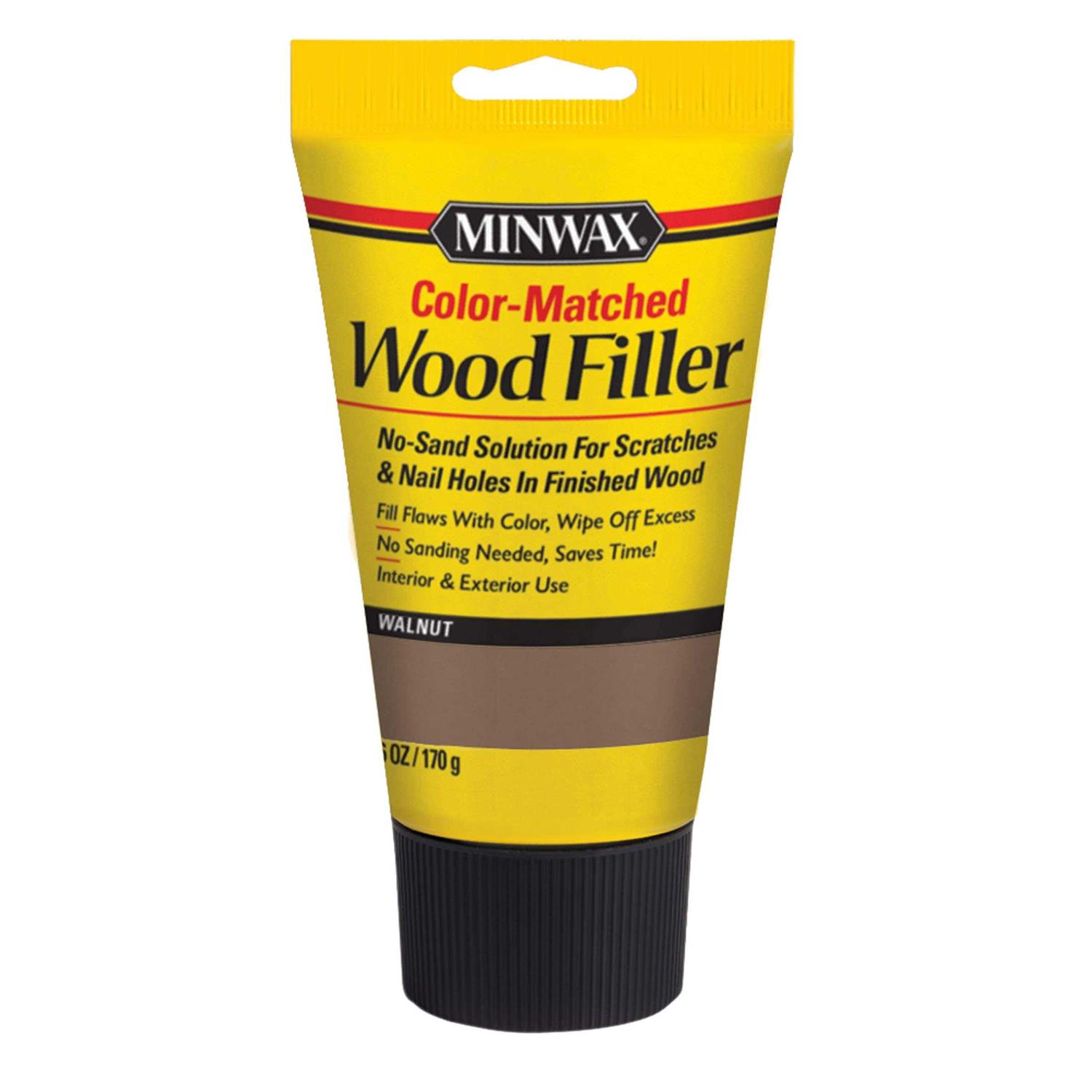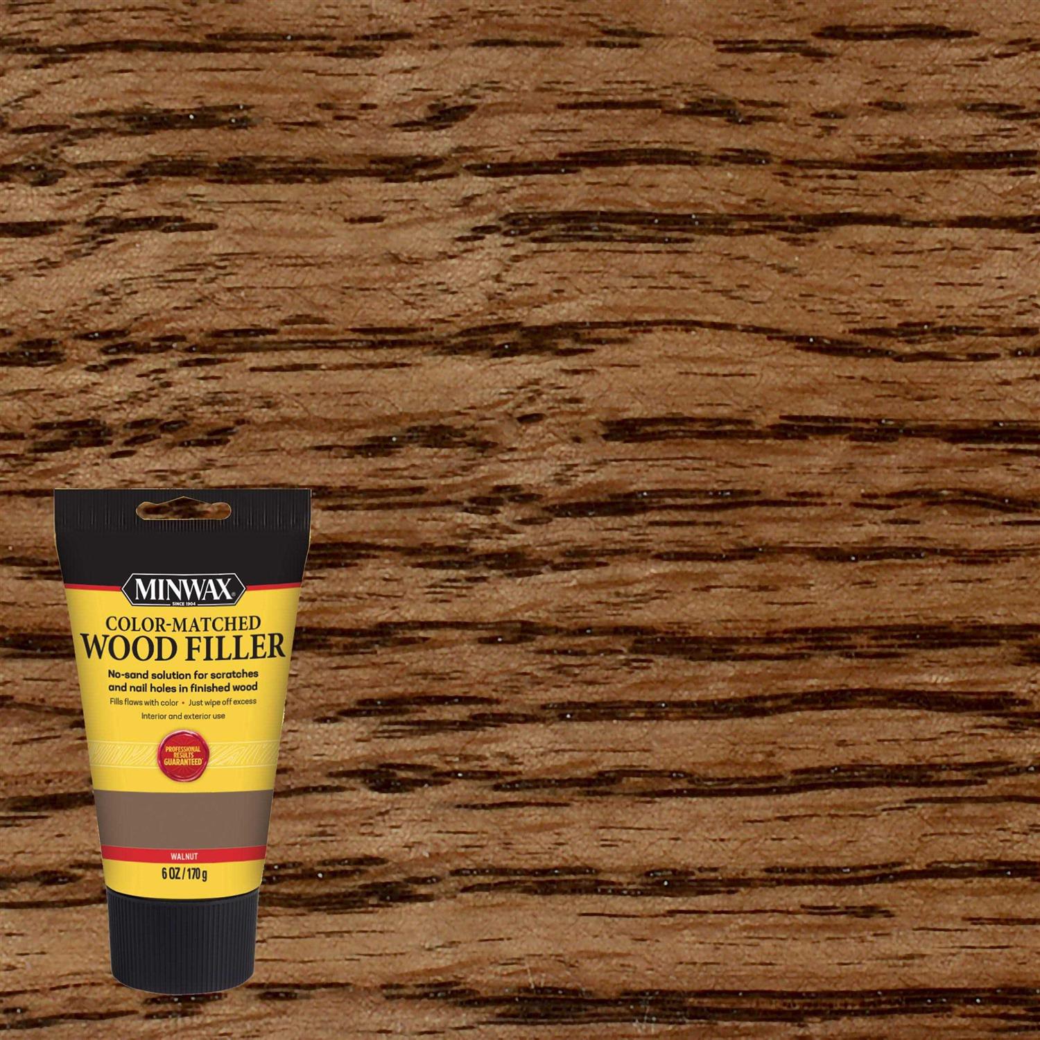 Minwax Color-Matched Wood Filler is a high-quality no-sand solution for defects in finished wood. The ready-to-use formula is ideal for repairing cracks gouges nail holes knot holes and other defects in all types of finished or unfinished indoor and outdoor wood surfaces. It looks and acts like real wood and can be sanded cut drilled planed stained varnished painted or lacquered.