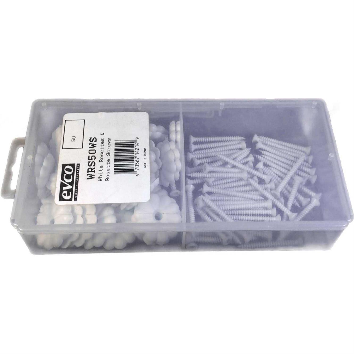 50 White Ceiling Rosettes with Rosette Screws Commonly found in Mobile Homes and RVs 1-1/8″ Diameter Fastens Ceiling Panels to Rafters Includes Screws! Fastens ceiling panels to rafters