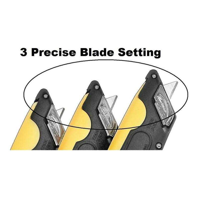EASY-CUT 2000 have built-in multiple blade-depth settings with slightly increased blade length that makes cutting single, double, and triple walled corrugated cardboards and boxes a breeze with superb control and fluidity – Even damaged and import boxes! A radius-blunt tip blade and integrated tape cutter makes EASY-CUT 2000 a world above its competitions! Designed with the user first, a gentle squeeze of its ergonomic handle extends the blade naturally. No need for continuous and repetitive thumbing action, thus greatly reduce the risk of injury that is common with other knives and box cutters. When the user is finished with cutting, simply release the handle, and the blade retracts automatically.