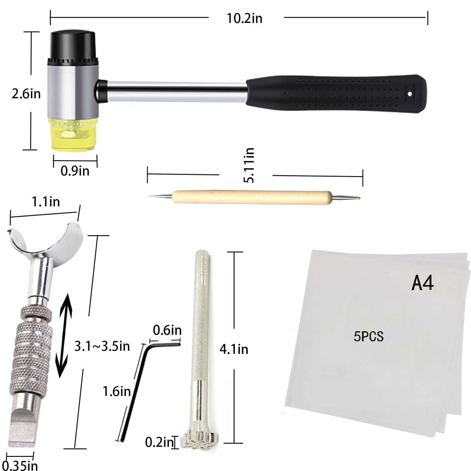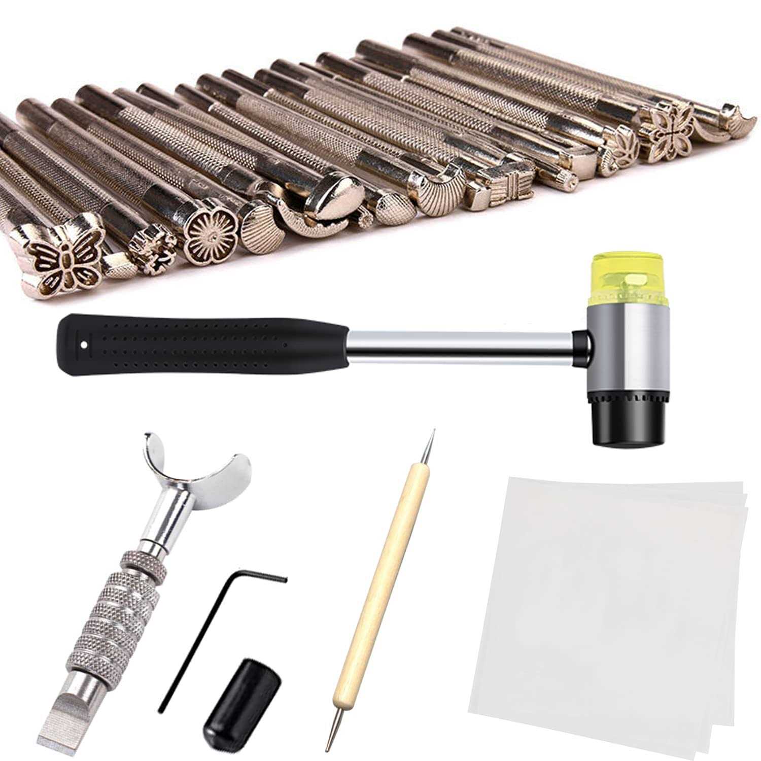 Leather Working Stamping Tools Kit: Our leather tools kit including 20 x leather carving stamps,1 x swivel knife,1 x leather hammer,1 x Tracing pen,5x tracing paper,great craving tools set is suitable for beginner and professional craft man. Leather Carving Stamps Tools:the leather carving kit are made with clear texture, appearance silver, beautiful patterns and durability to meet your different needs. The handle has a non-slip texture and an elegant appearance. Leather Engraving Set:Rubber hammer works with leather stamps, to make the printed pattern on the leather more clear. The tracing embossing stylus tool is double-ended for easy use, and the rounded tip is designed to protect the leather from cuts ,satisfy your needs during drawing patterns. Swivel Knife and Tracing Paper:The professional leather Swivel knife can be adjusted for different sizes of hands and is the best choice for professional leather smiths;Translucent tracing paper is tough, not easy to break and other characteristics, there is plenty of space to meet your painting and sketching. High-Quality Carving Stamps Kit