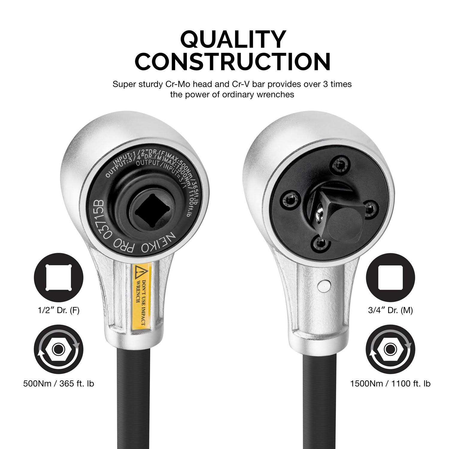 Neiko Pro 03715B 1/2 Drive Torque Wrench, 1100 Foot-Pound Heavy Duty Torque Multiplier Wrench, Cr-Mo and Chrome-Vanadium