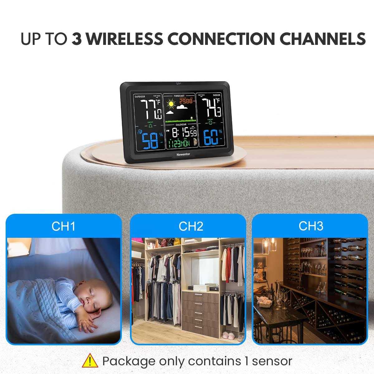Newentor Weather Station Wireless Indoor Outdoor Thermometer 7.5in Display Atomic Weather Clock