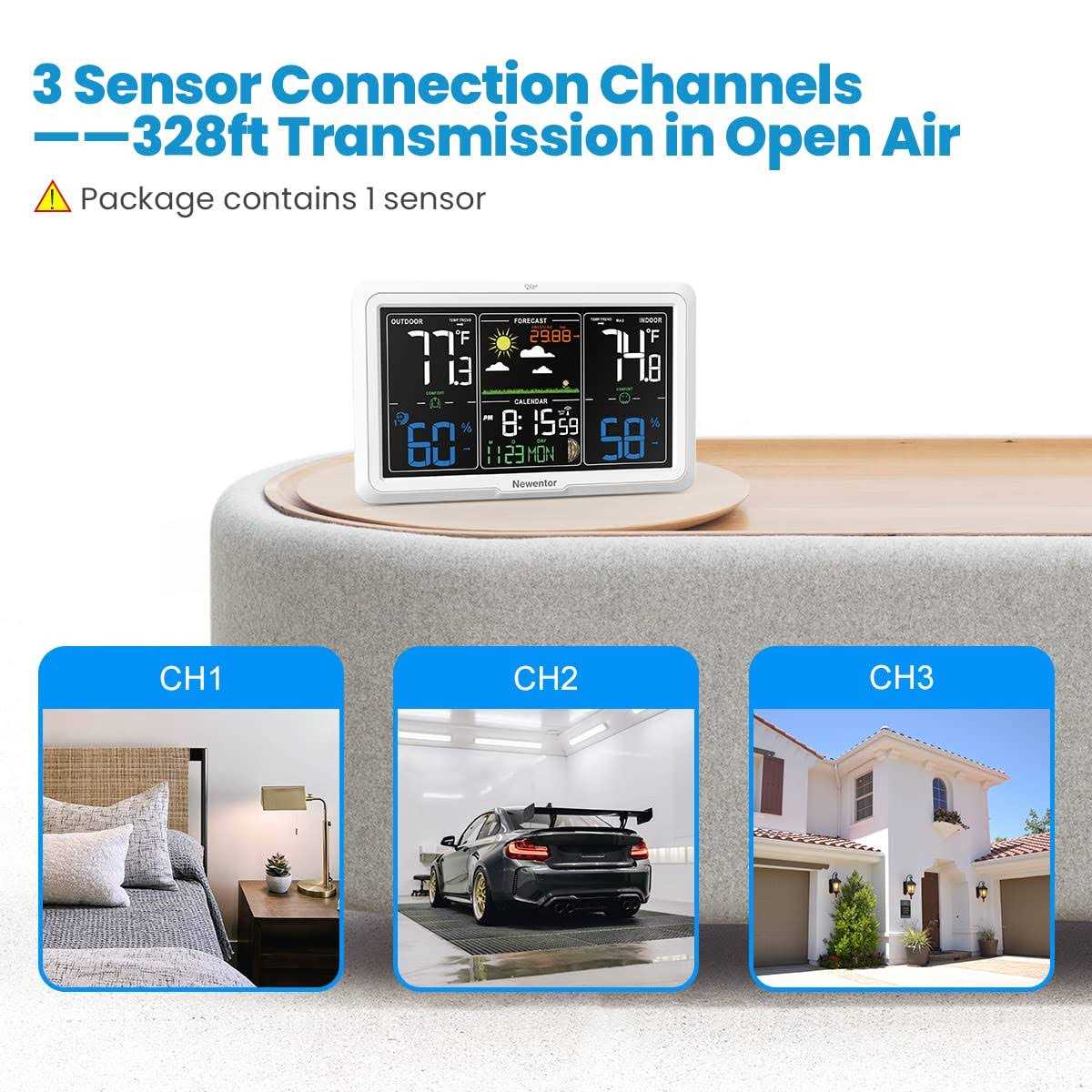 Newentor Weather Station Wireless Indoor Outdoor Thermometer 7.5in Display Atomic Weather Clock