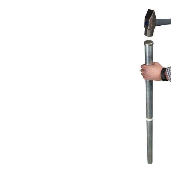 - To install, drive pipe into the ground with a sledgehammer or post pounder and once pipe is level, sleeve vinyl post over pipe