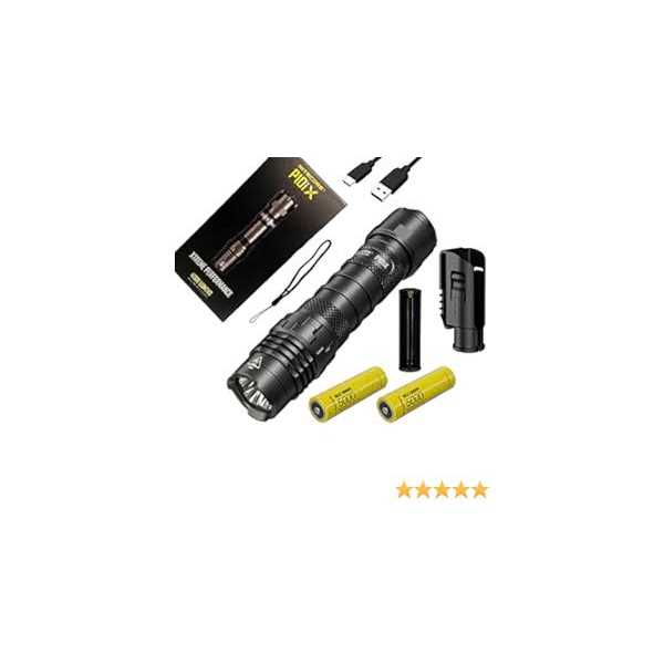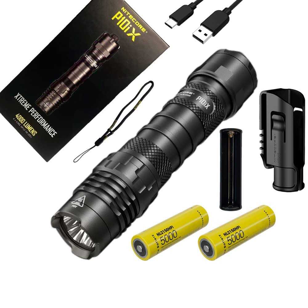 Nitecore Combo P10iX Type-C Rechargeable Ultra Compact Flashlight – 4000 Lumen w/Extra NL2150HPi Battery and Eco-Sensa Charging Cable