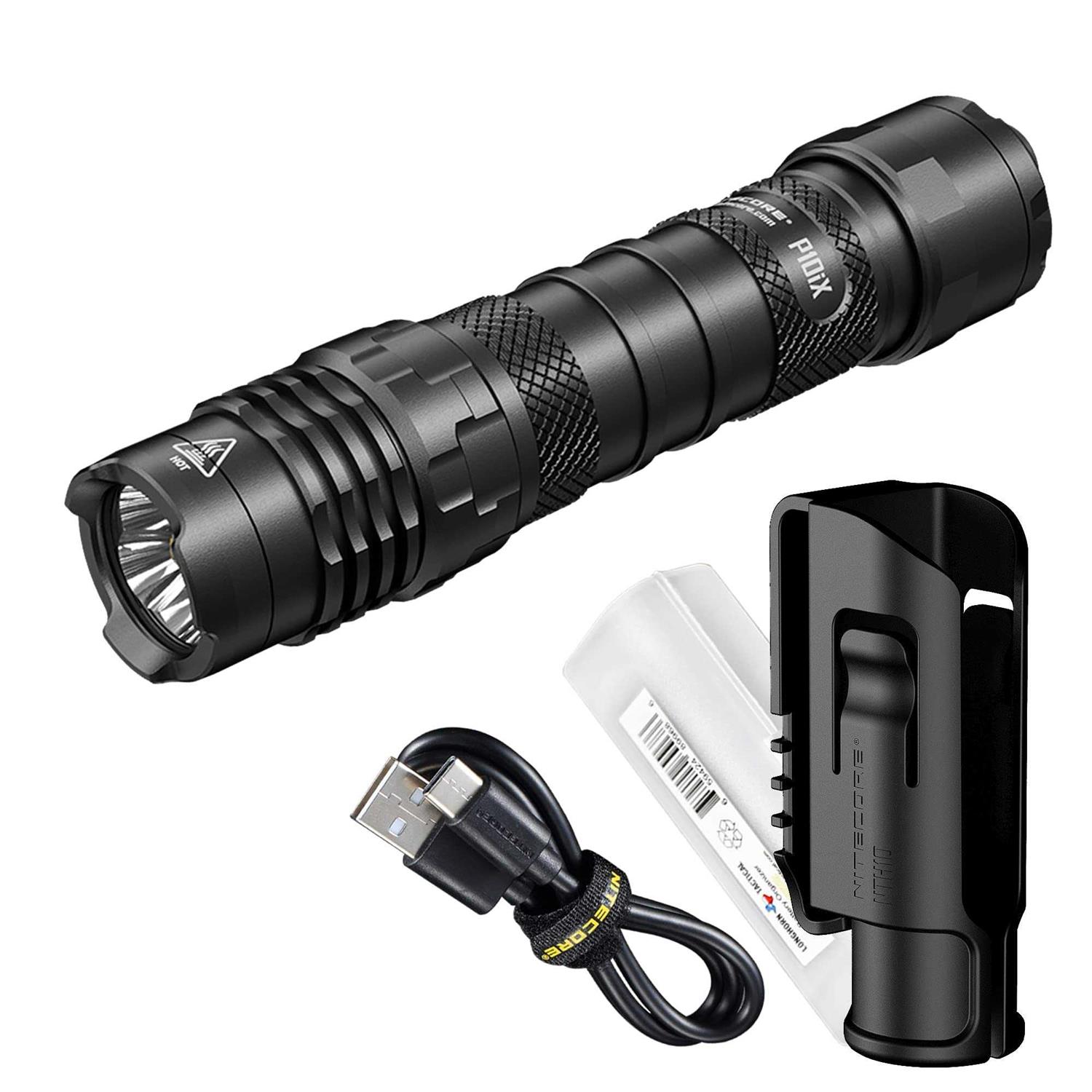 The NITECORE P10iX is unrivaled when it comes to performance. Nitecore took the beloved P10i frame and maintained the compact size, ergonomics, and quadrupled the power with four LEDs. This Xtreme tactical flashlight outputs a 4000 lumen flood light that can reach up to 172 yards. Can you believe all that power fits in such a compact flashlight? Designed for law enforcement and military users, enjoy instant turbo, instant strobe, six brightness modes and two programmable user modes. Nothing can hold the P10iX back with two user modes and a powerful nonlinear strobe frequency. For the slimmest tactical flashlight nothing comes close to the Nitecore P10iX. The P10iX is part of Nitecore’s iSeries using intelligent 21700 batteries. This enables a potently efficient output, granting 30 minutes of 4000 lumen burst and a max runtime of 350 hours on low. Fast recharge the P10iX via its built-in USB-C port.With an IP68 waterproof rating and a covered charging port, the P10iX can be used safely in any climate. Included is a NTH10 tactical holster that is compatible with duty belts and MOLLE systems. The P10iX is an ideal choice for security, police, or military personnel.