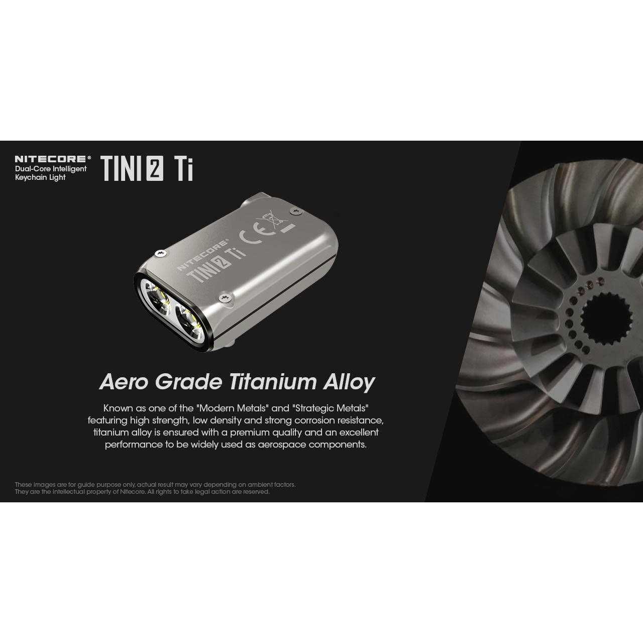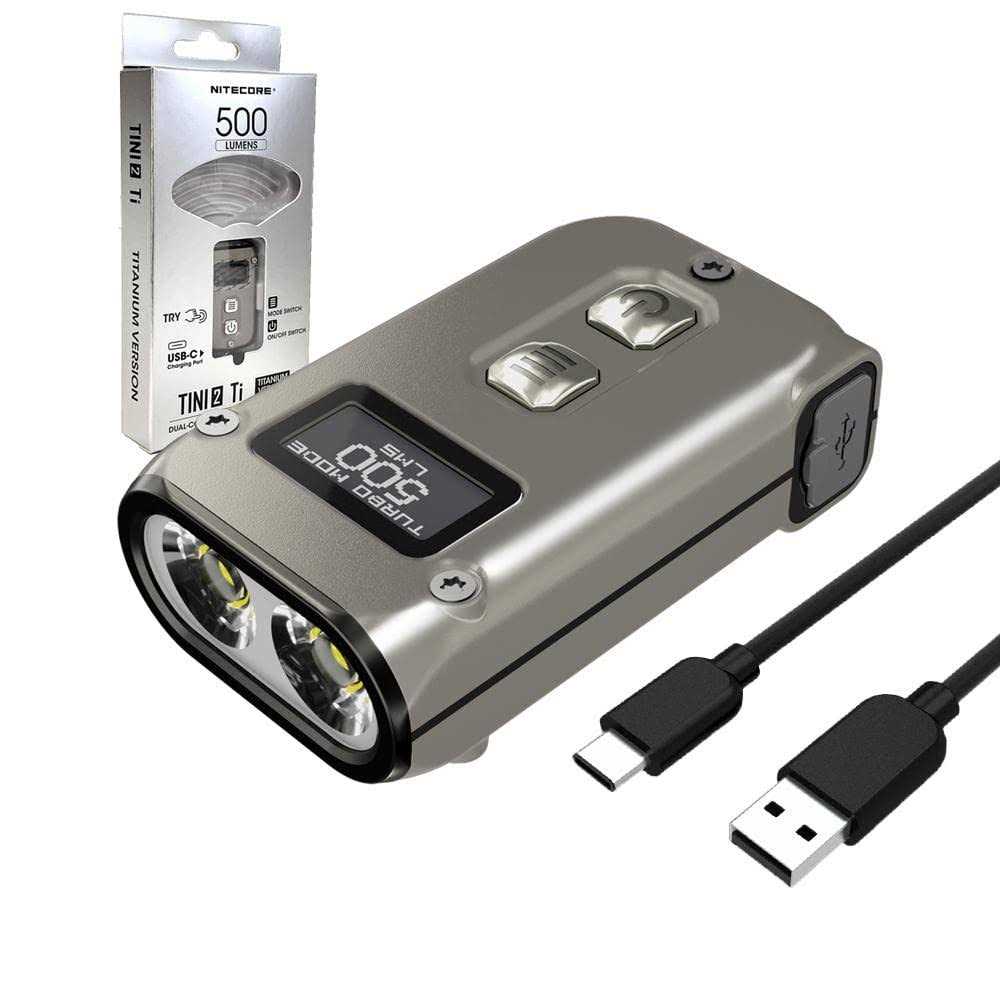 Nitecore Tini-2 Ti Titanium Dual-CoreRechargeable LED Keychain Light – 500 Lumens w/Free Eco Sensa Type C USB Cable