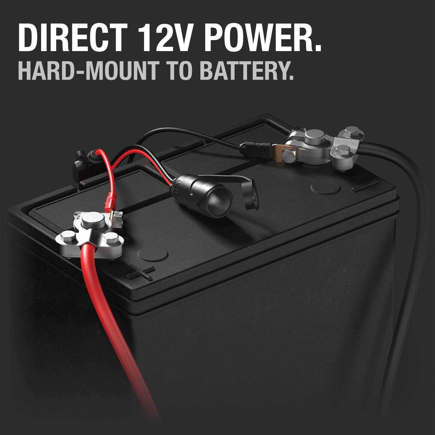 - Connect directly to your battery; Power your favorite 12 volt devices, like a tire inflator, vacuum, coffee maker and more