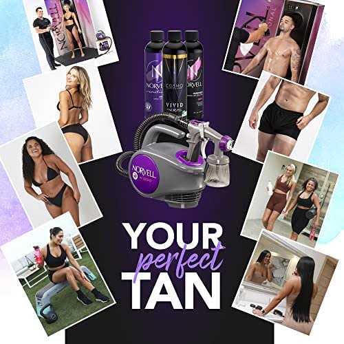 Norvell Sunless Kit – M1000 Mobile HVLP Spray Tan Airbrush Machine + 8 oz Tanning Solutions in Ultra Vivid ‘Cosmo’, Venetian and Dark + Norvell