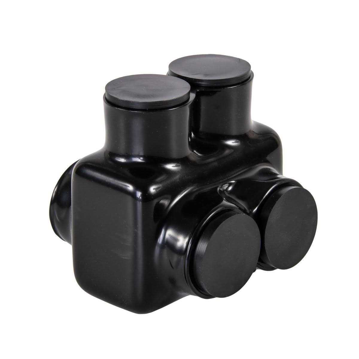 NSI Polaris 2-Port Insulated tap connecter in black color is made up of plastisol for flexibility and is abrasion, chemical resistant. It is dual rated and insulated to provide protection from electric current. Connecter includes an offset port, slotted hex screw and has a voltage rating of 600 Volts at a temperature range of -45 to 90 deg C. It measures 2.120 Inch x 2.310 Inch x 2.130 Inch. The connecter is ideally used for connecting two wires, splicers and accommodates wire of size 250 MCM – 6 AWG which is connected from either sides. Insulated tap connecter is cULUS listed.