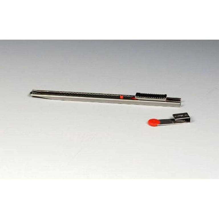 NT’s Pro-line stainless steel knife is often referred to as the “Red Dot” knife in the professional window tinting business. This slim knife is ideal for free hand precision trimming jobs. For precision tinting, this window tint cutter is the premier choice amongst the professionals in the graphics industry. This rust resistant stainless steel holder now comes with NT’s high-grade stainless steel blade which makes this the perfect tool for cutting damp window film, wallpaper, etc. Convenient snap off utility knife has an extra high quality stainless steel sliding track which allows the blade to glide in and out smoothly. Ratchet Auto-Lock slider will hold the blade secure for maximum cutting efficiency. End cap also functions as a blade snapper. Designed for right and left handed use with a simple reversal of blade. The blade used in this professional snap off knife is made of extra high quality stainless steel and produced through multiple stages of precise process to obtain the ultimate sharpness and optimum edge-retention. Made in Japan.