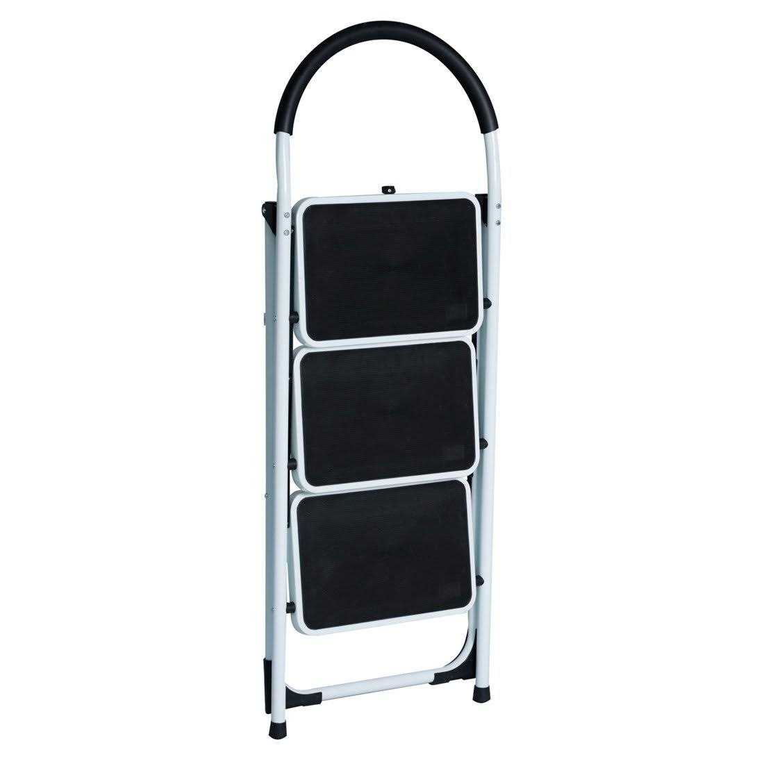 Good Life En131 Folding 3 Step Ladder Home Depot Steel Step Ladders Lightweight 300 lb Capacity with Hand Grip Anti-Slip and Wide Pedal (3 step)