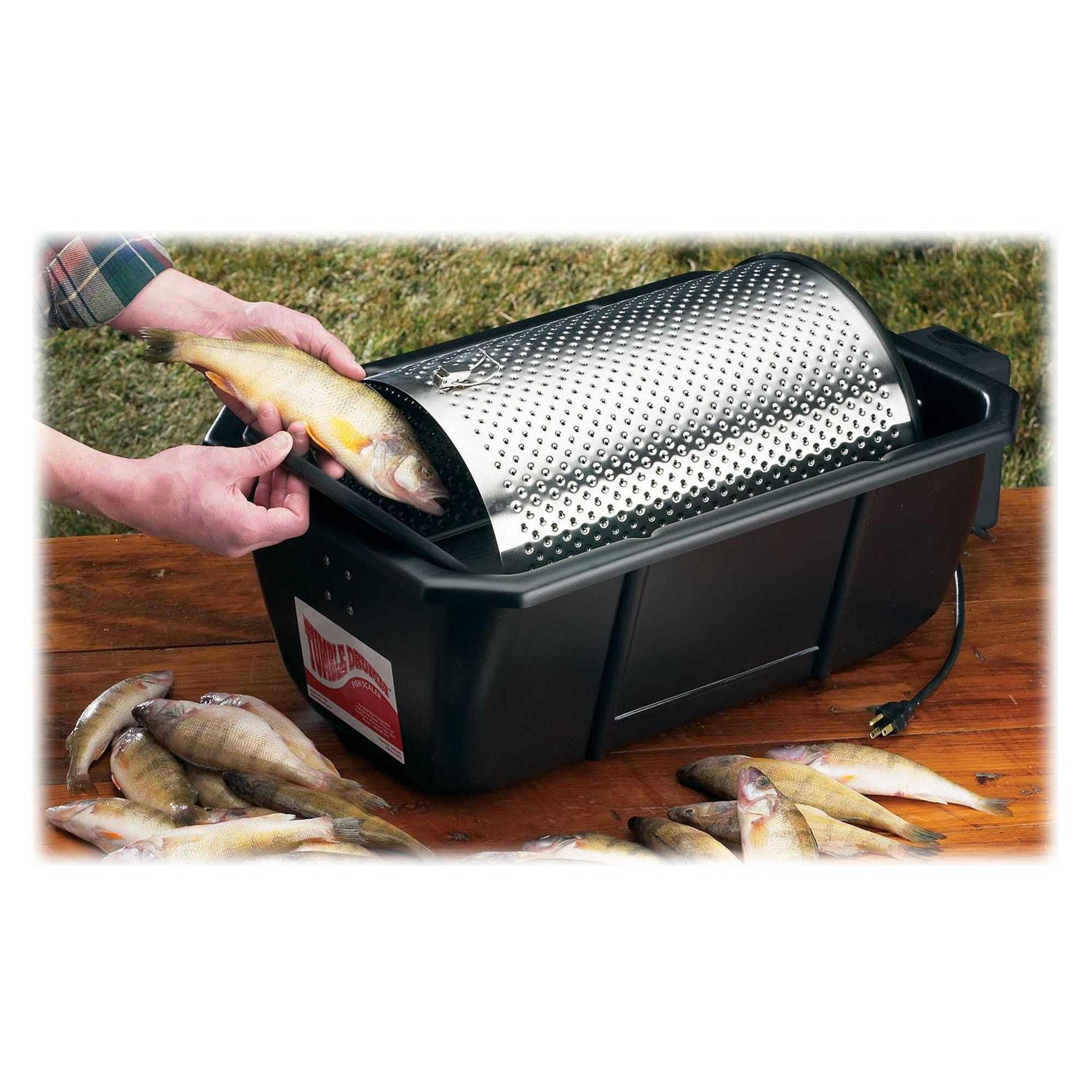 • Large capacity stainless steel drum with geared electronic motor can scale up to 50 panfish at one time