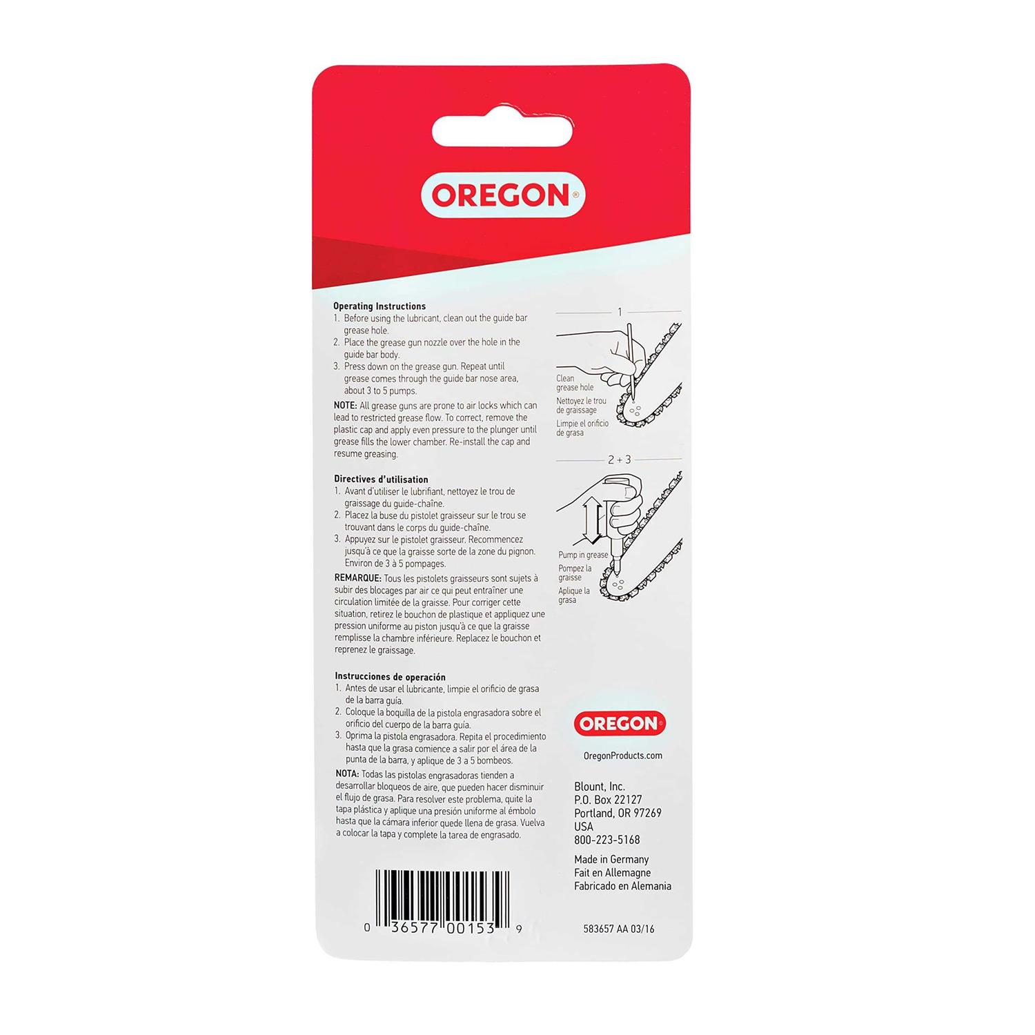 Ideal for occasional users this Oregon grease gun helps reduce friction and enhance cutting performance. It also helps prevent premature wear, especially on guide bar noses. Made from high-quality plastic materials, it can withstand temperature changes and has a transparent body allowing you to see the current fill level without having to open the cap. Providing one-hand operation, the self-dispensing grease gun features a pointed steel nozzle and is pre-filled with all-purpose lubricant. Designed for sprocket-nose lubrication to extend the life of your bar.