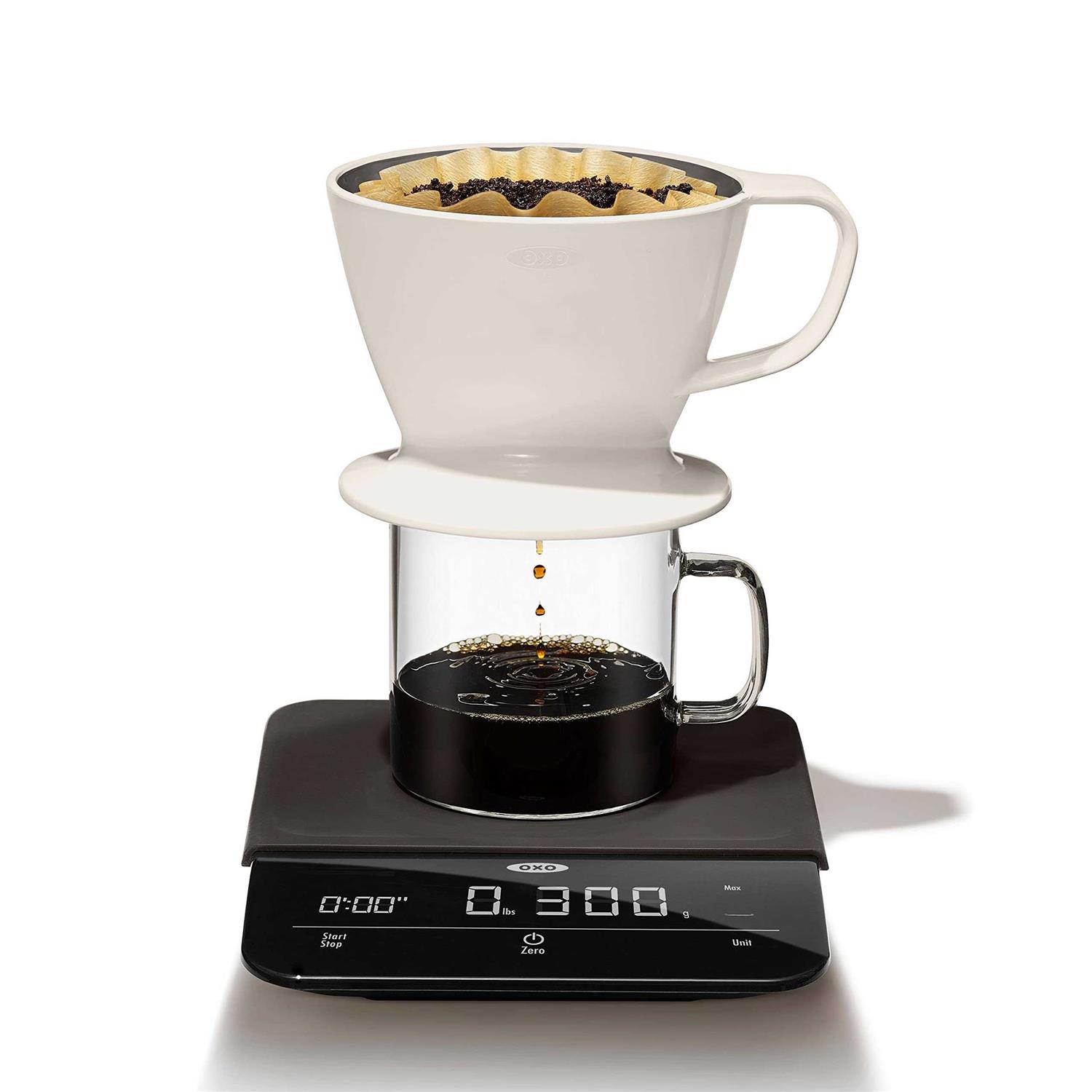 Precision is the key to better baking and coffee-making, and with the OXO good grips 6 lb precision scale with timer, you can bake your cake and craft the Coffee to go with it too. Get split-second precision with measurements from 0. 5 g up in 0. 1-Gram intervals; weigh in grams, ounces, and pounds while the zero function tares the scale so you can add more ingredients without breaking your stride. The digital display is easy to read, while the scale itself is sleek and compact, for convenient storage. The built-in timer is optimized for pour-over Coffee, auto shut-off saves battery life but is easily disabled while you use the timer. The smooth, flat surface is easy to wipe clean, and the included non-slip silicone mat protects the scale from heat and scratches. OXO Good Grips 15.2 kg precision scale with timer measures 0. 5 g in 0 1 g intervals for maximum accuracy. Ingredient weight in grams, ounces and kg up to 3 kg. Built-in timer and optional auto-off are perfect for pouring coffee. Slim and compact shape for convenient storage. The tare function allows zero scale before adding additional ingredients. Smooth and flat surface is easy to clean. Large digital display is easy to use and easy to read. 4 x AAA batteries included.