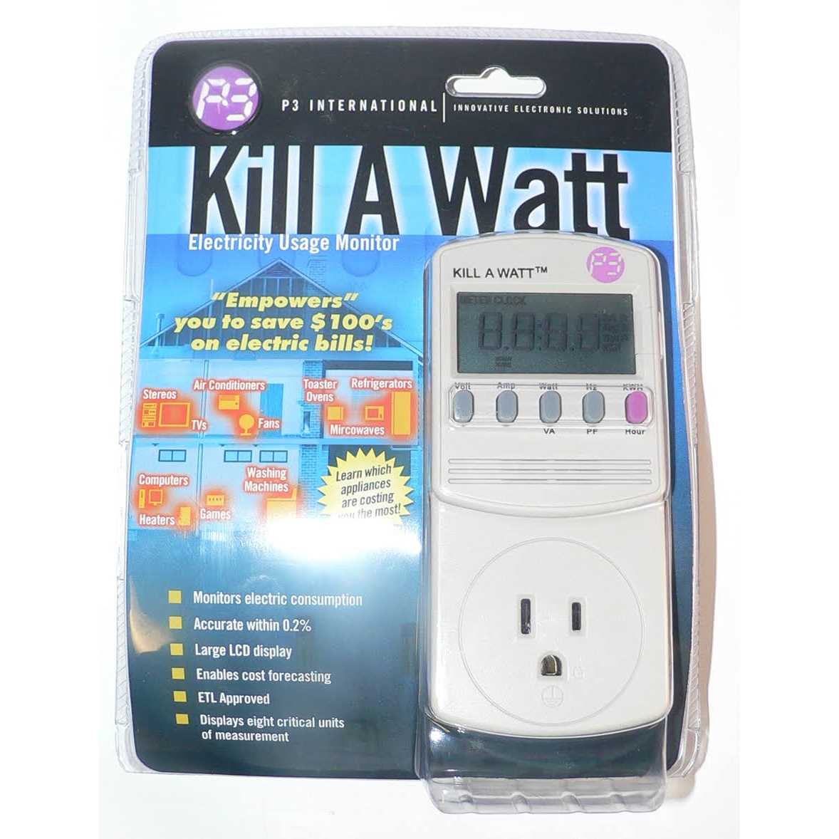The cost of electricity can really hit you where it hurts. Now with Kill A Watt you can reduce your energy costs by identifying the real energy abusers. Simply plug your appliance into Kill A Watt and assess how efficient it really is. The jumbo LCD display measures consumption by the kilowatt-hour, just like your local utility company, so you can quickly calculate costs. Its perfect for seeing how much juice that freezer in the garage is sucking up, or to see how much it costs to keep your computer on throughout the day.