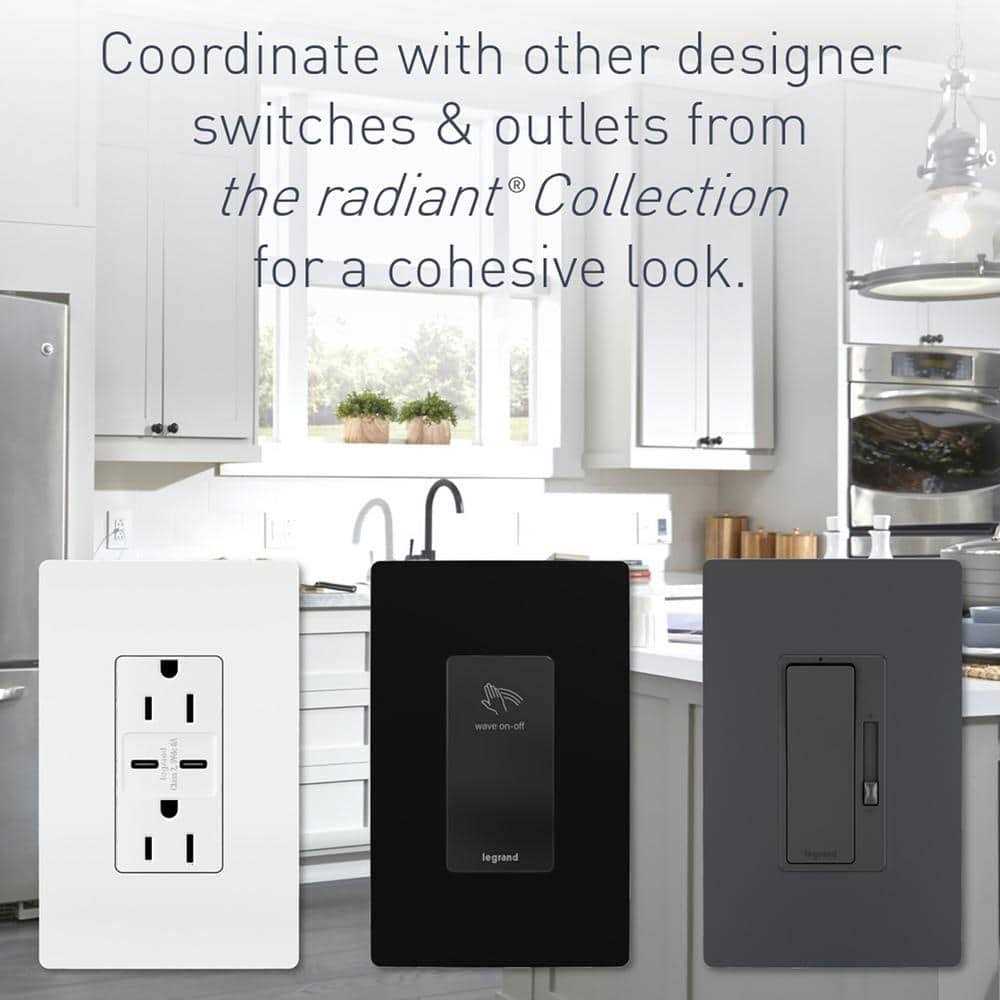 The radiant collection is a step up from the standard with simple, classic options in wiring devices, home automation controls and screwless wall plates that complement today’s homes. The clean look of radiant hits home in this handsome combination switch. Two 3-way switches tuck neatly into a single wall plate, delivering convenience without the clutter. The metallic dark bronze finish is designed to complement the beauty of dark bronze lighting fixtures, faucets, and hardware.
