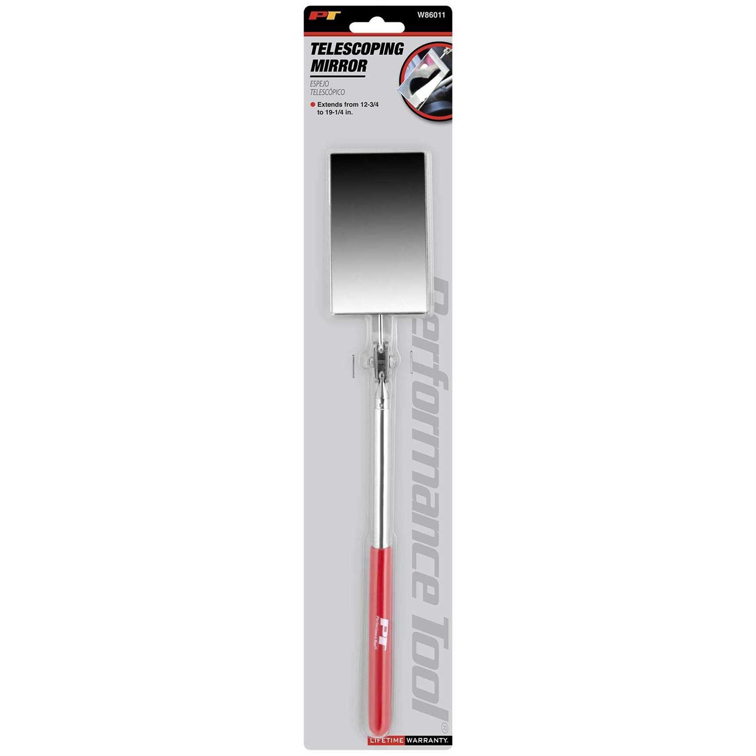 The Performance Tool Telescoping Inspection Mirror, W86011, is a versatile tool designed to make your automotive inspections easier. With its extendable length of 12 3/4″ to 19 1/4″, you can reach those hard-to-access areas effortlessly. The mirror swivels 360 degrees, providing a clear view from any angle. Its vinyl coated handle ensures a secure grip, allowing for precise control during inspections. Upgrade your toolbox with this reliable and convenient specialty tool.
