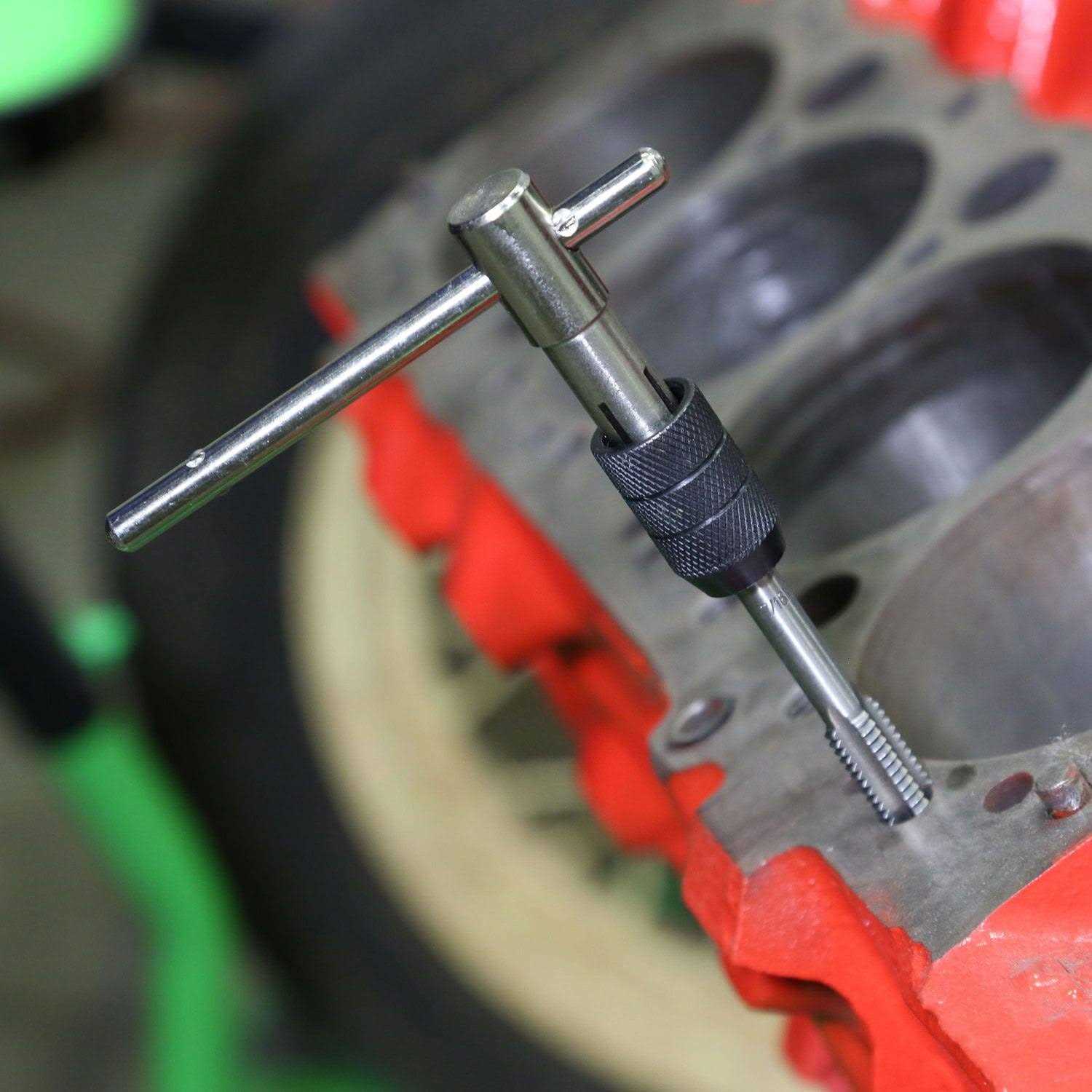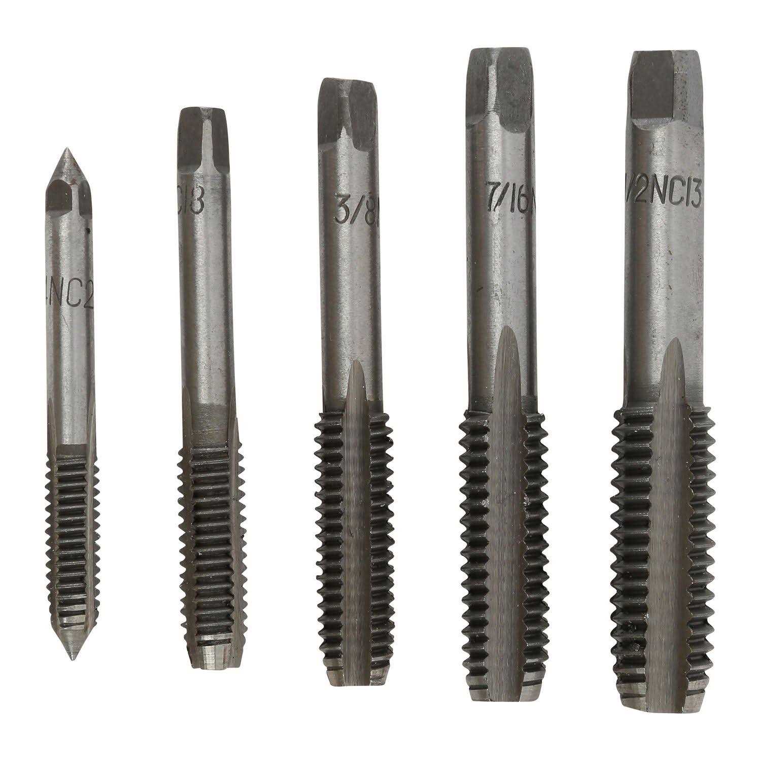 Tap Wrench SetSAEIncludes:1/4 inch NC20 for 13/64 inch Drill Bit5/16 inch NC18 for 17/64 inch Drill Bit3/8 inch NC16 for 5/16 inch Drill Bit7/16 inch NC14 for 3/8 inch Drill Bit1/2 inch NC13 for 27/64 inch Drill BitT-Handle JEGS 6 piece Tap Wrench Set cuts and renews internal threads for standard pipe sizes; great for thread maintenance, repair work, and re-threading. The T-handle wrench features dual holding jaws for large and small sized taps and it is movable to provide additional leverage. Each piece is constructed from tungsten steel for strength and durability.
