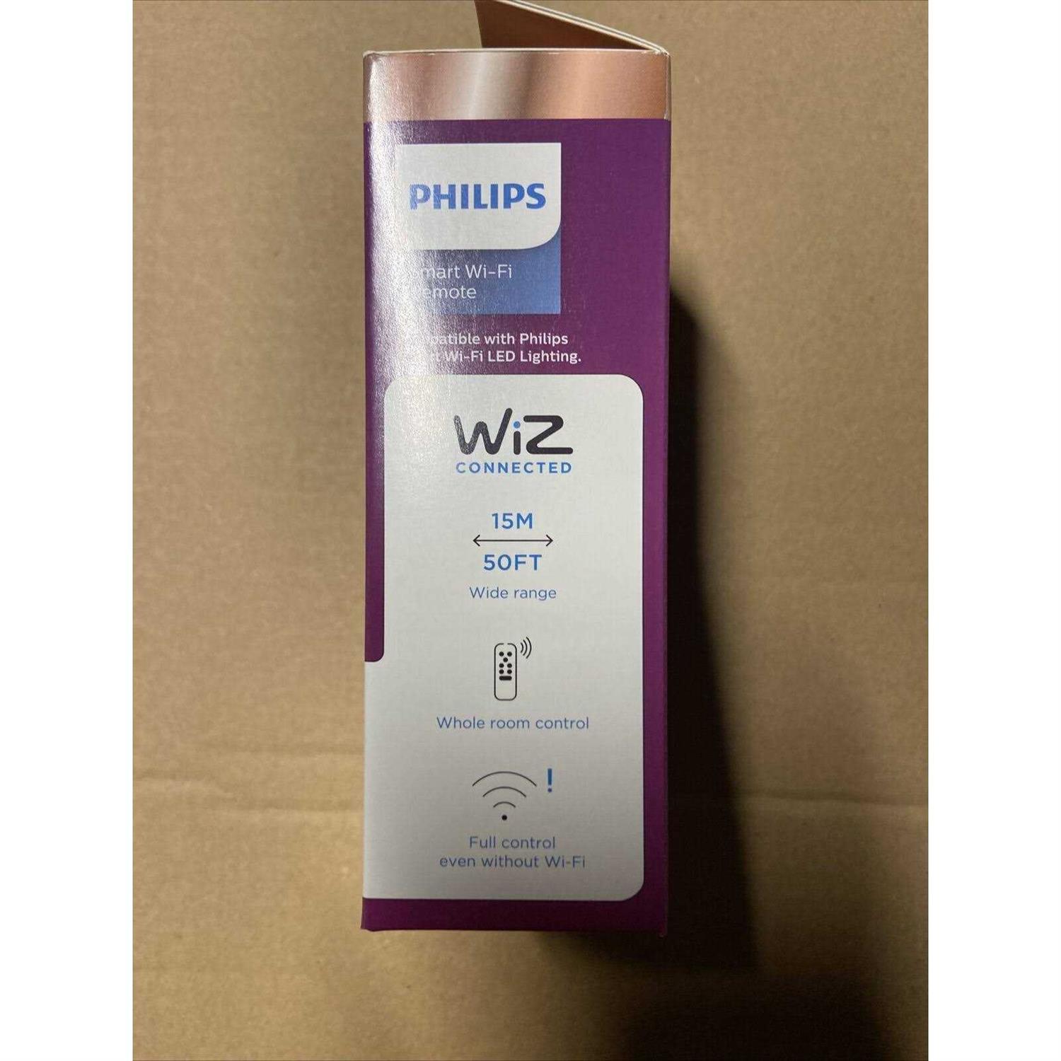 Philips Smart Wi-Fi LED lighting puts you in complete control with smart bulbs and accessories that are easy to use, functional and affordable. This Smart Wi-Fi Remote provides easy, wireless control for all Philips Wi-Fi and WiZ connected products. Turn lights on or off, change the brightness, turn on the nightlight setting or choose between 4 of your favorite light modes or custom scenes. You can change your favorite modes and scenes in the WiZ app at any time. Conveniently control all of the lights in a room with a range up to 50 ft. This product requires a Wi-Fi connection to operate wirelessly. Philips Wi-Fi lighting is WiZ-connected and controlled with the WiZ app. Not compatible with Philips Hue. Color: Black.