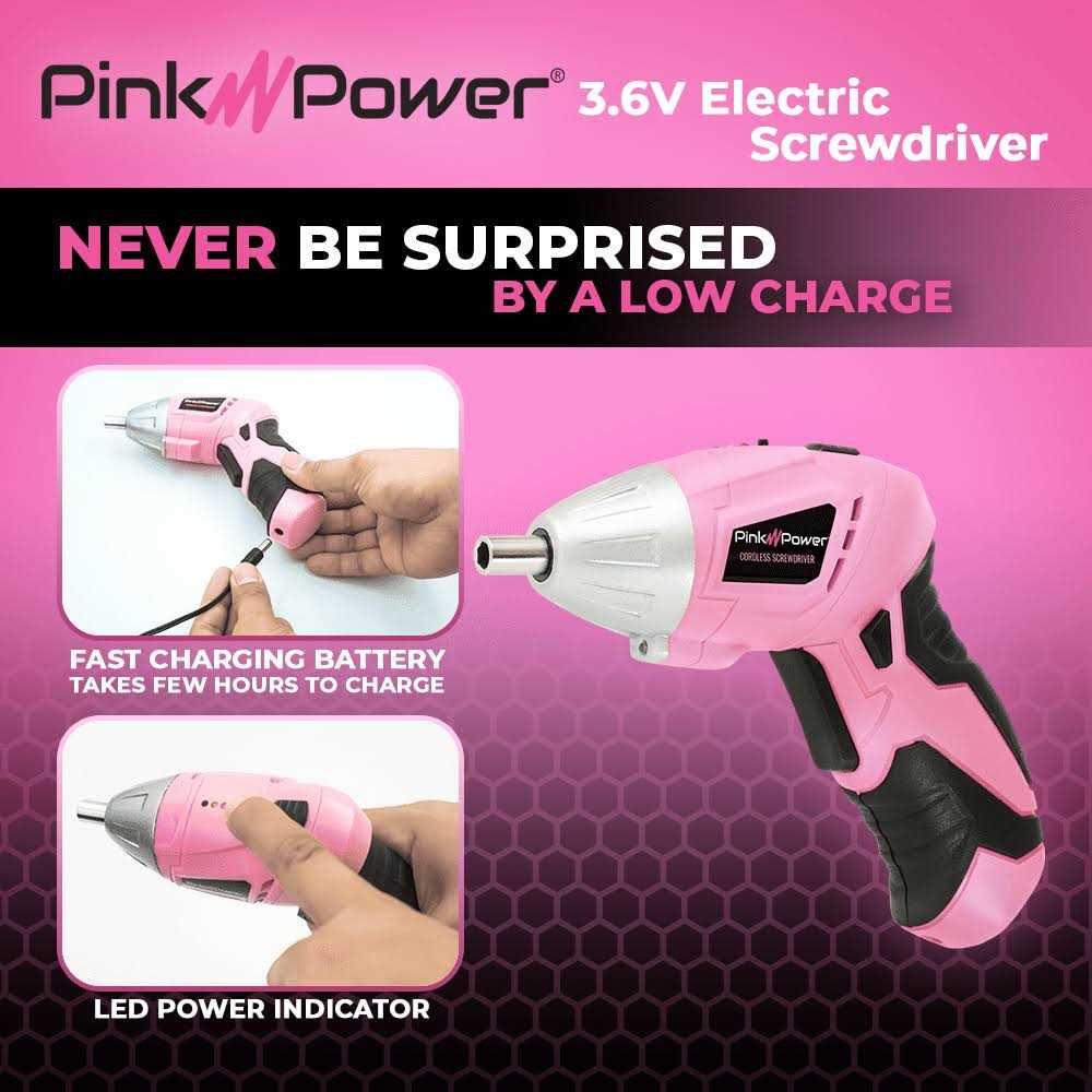 Pink Power PP481 3.6 Volt Cordless Electric Screwdriver Rechargeable