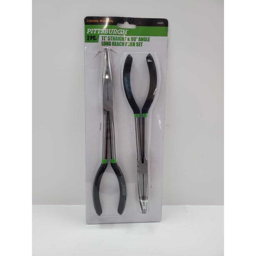 Pittsburgh 64081 2pc 11″ Straight & 90° Angle Longreach Pliers Set New