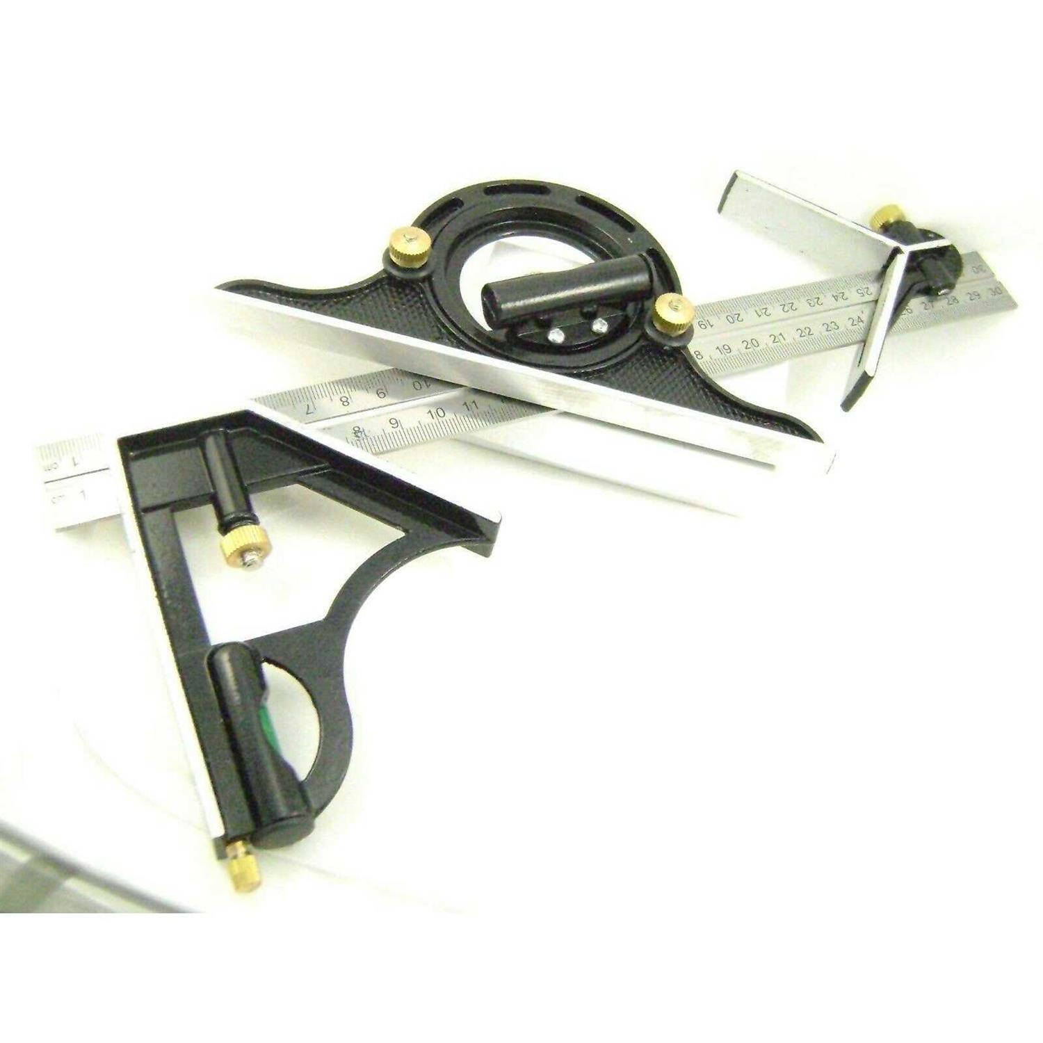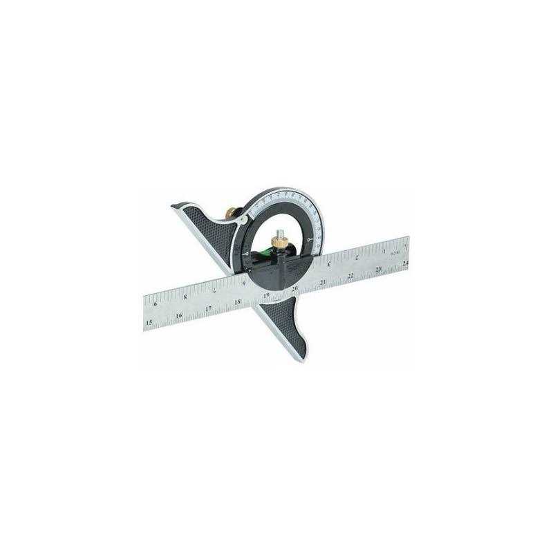 Get the all the accurate measurements you need for your wood or metal project with this combination square. The combination set measures in SAE and metric scales on the stainless steel rule and on the aluminum square head, center head and protractor. The combination square set also includes a scribe and spirit level to assure accurate balance and evenness on your project.